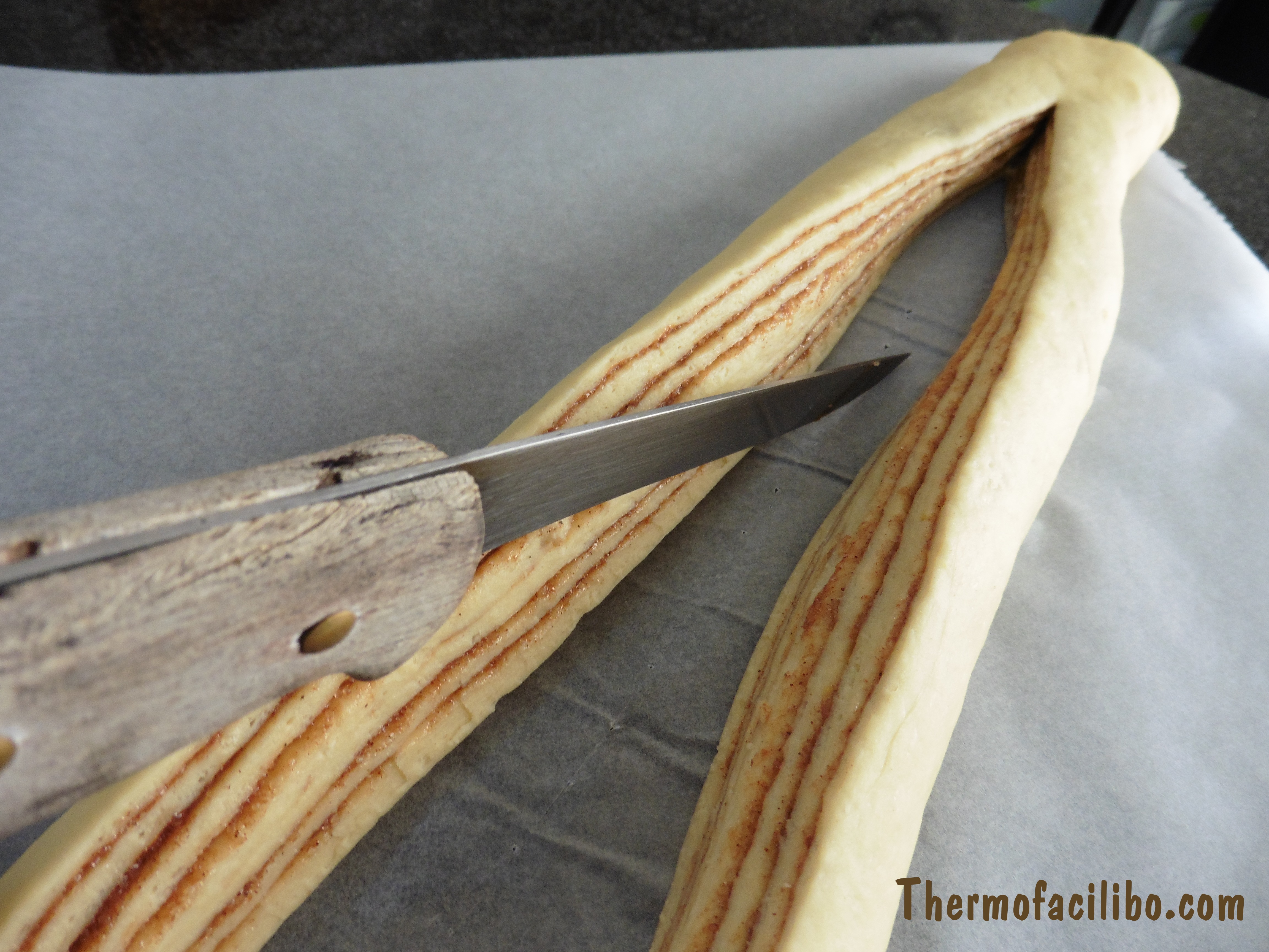 - Ara fem una trena. Deixant el tall mirant cap a dalt. Així quedarà la típica forma del Kringle.