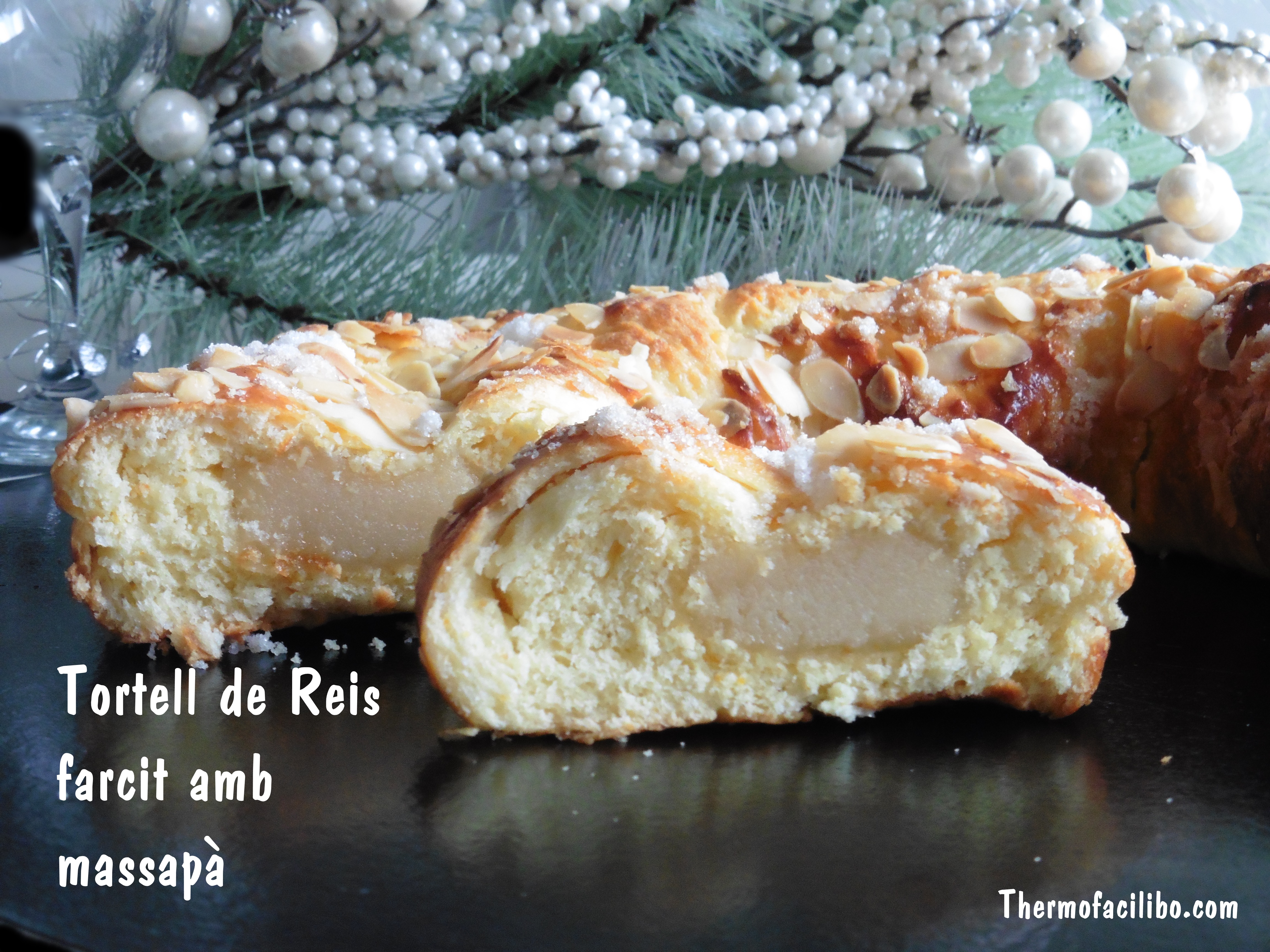 Jo l’he farcit de massapà i l’he decorat amb ametlles laminades i sucre. Però li podem donar l’acabat al nostre gust.