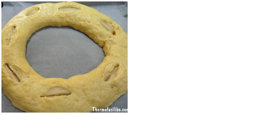 11.Col·loquem el tortell en una safata de forn folrada amb paper de fornejar.