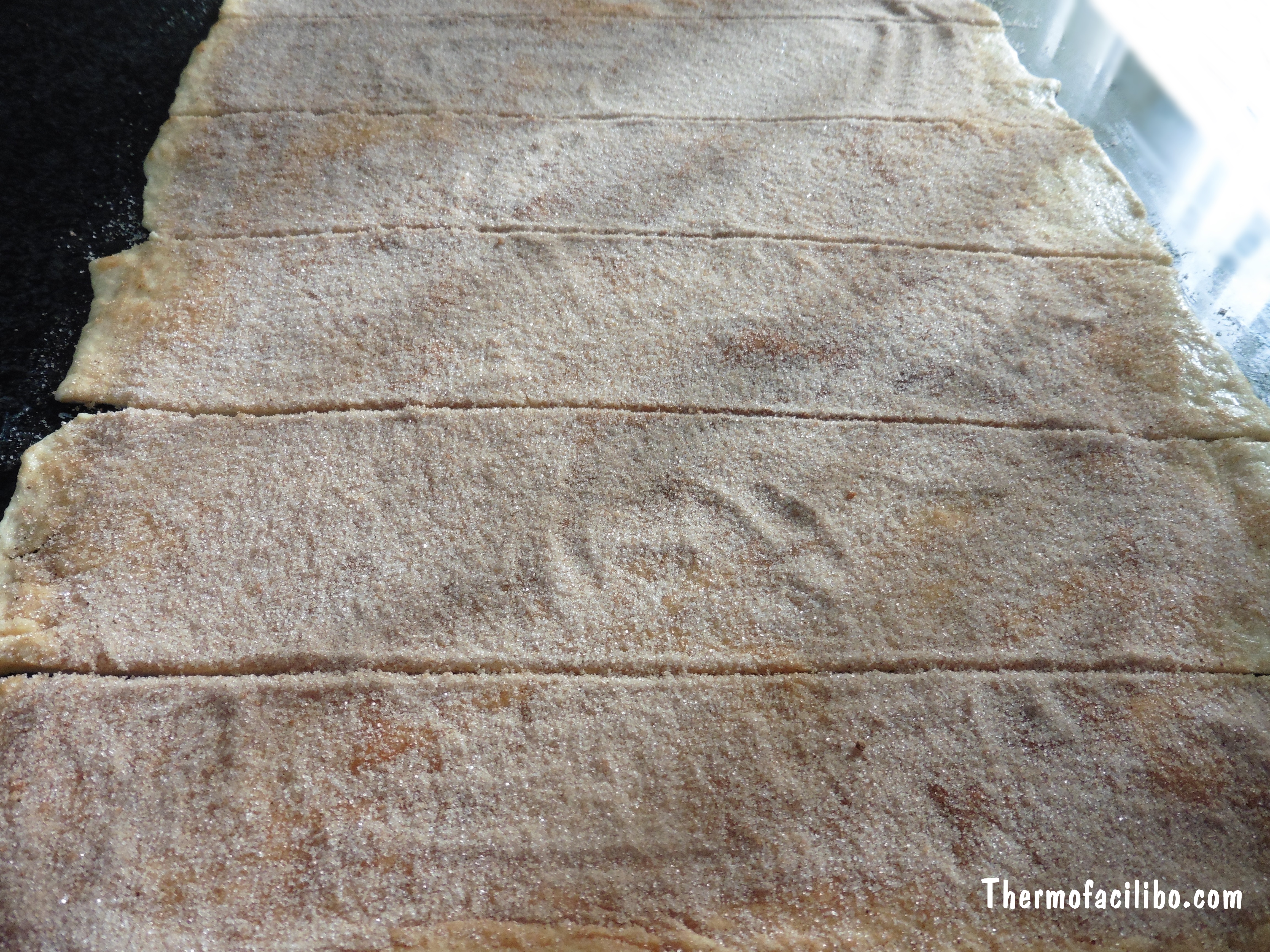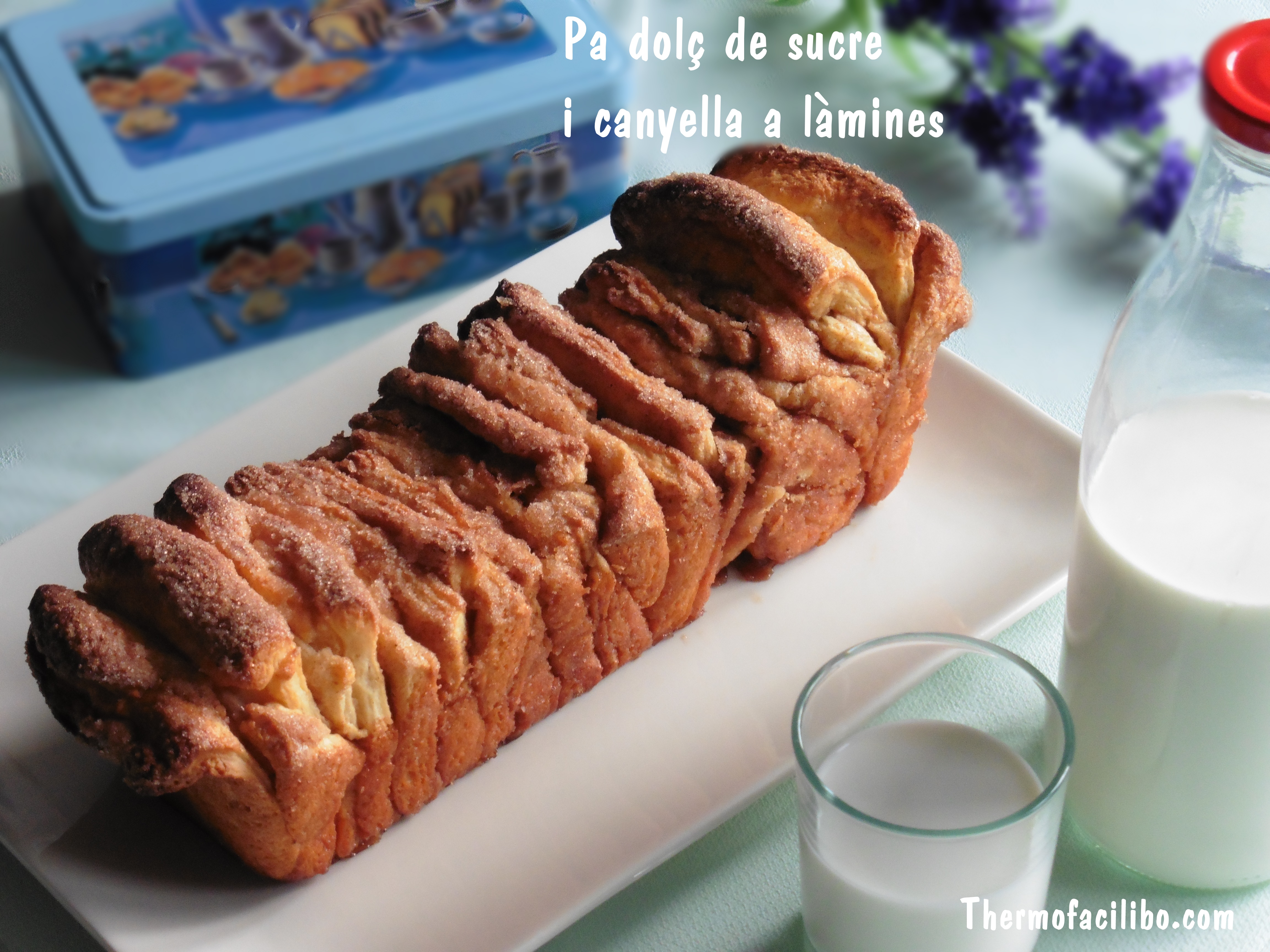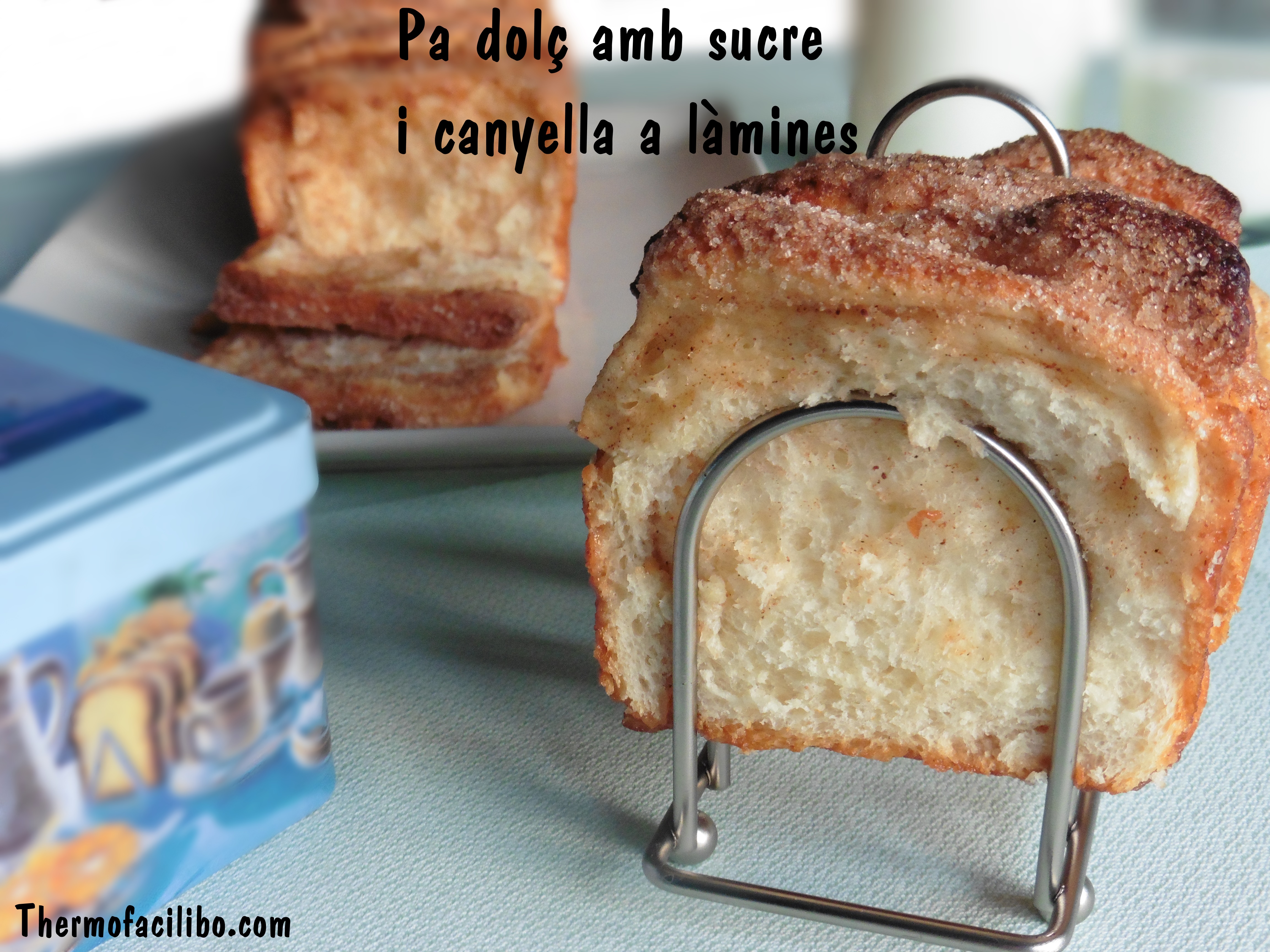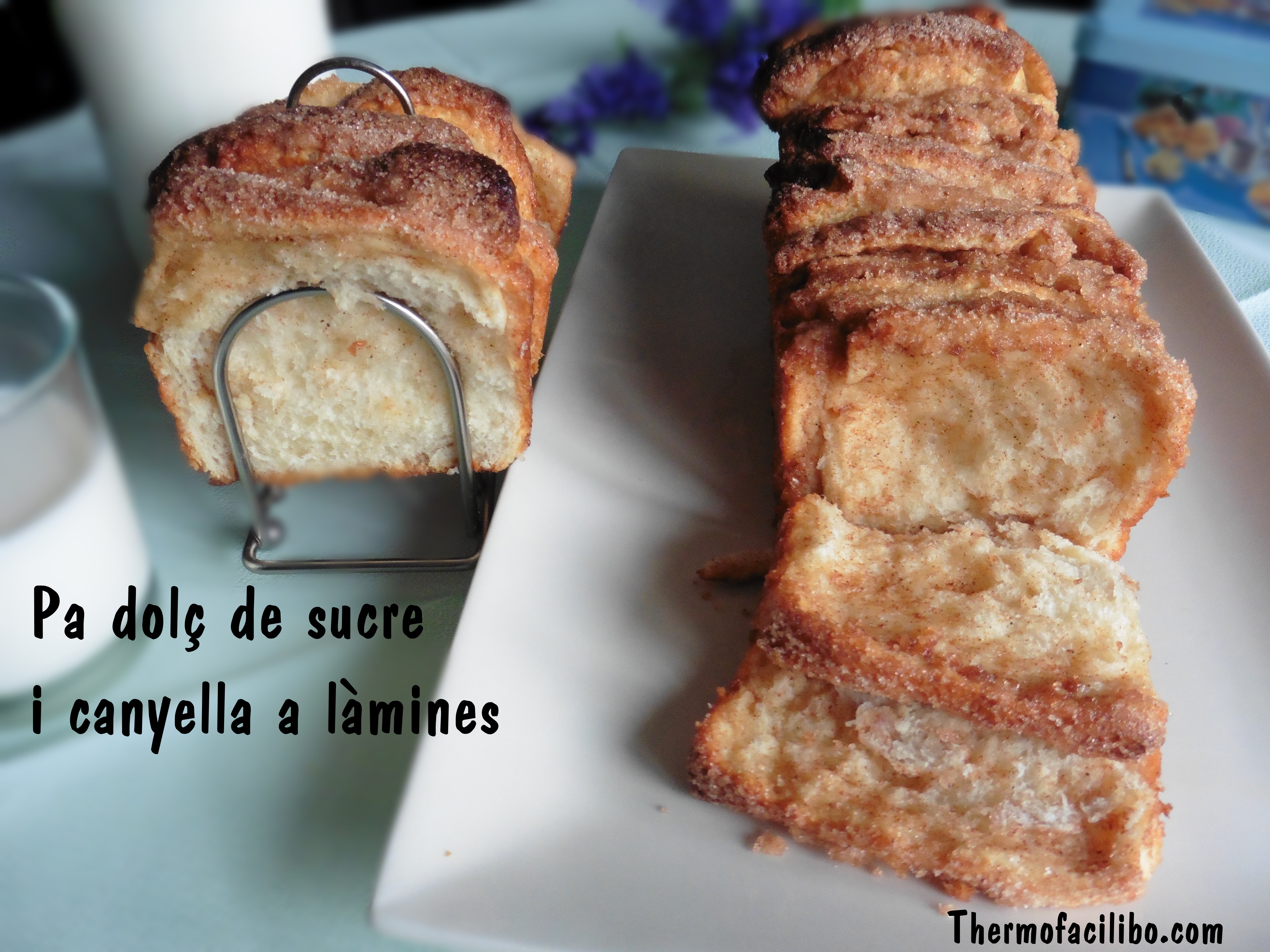 He preparat un pa dolç amb mantega, sucre i canyella. Queda una presentació a làmines molt bonica i original. Una delícia al paladar i us podeu imaginar l’olor de canyella que queda escampada per la cuina.