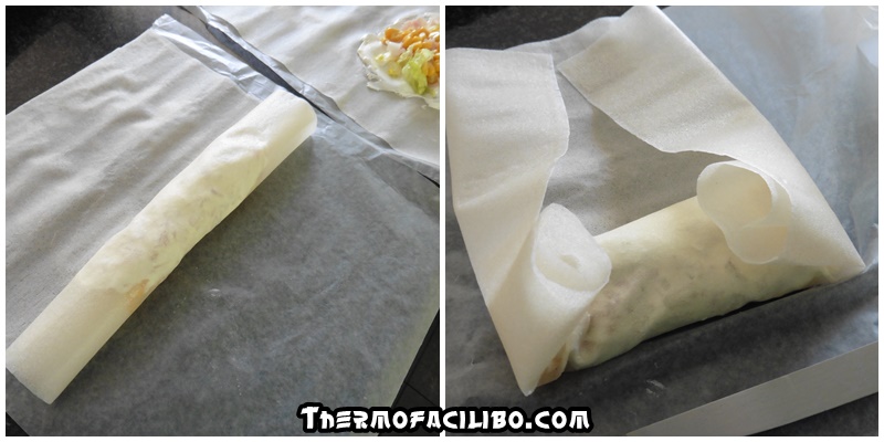 5.-Enrotllar prement bé i quan arribem a la meitat de la làmina doblegar els laterals cap dins i acabar d’enrotllar.