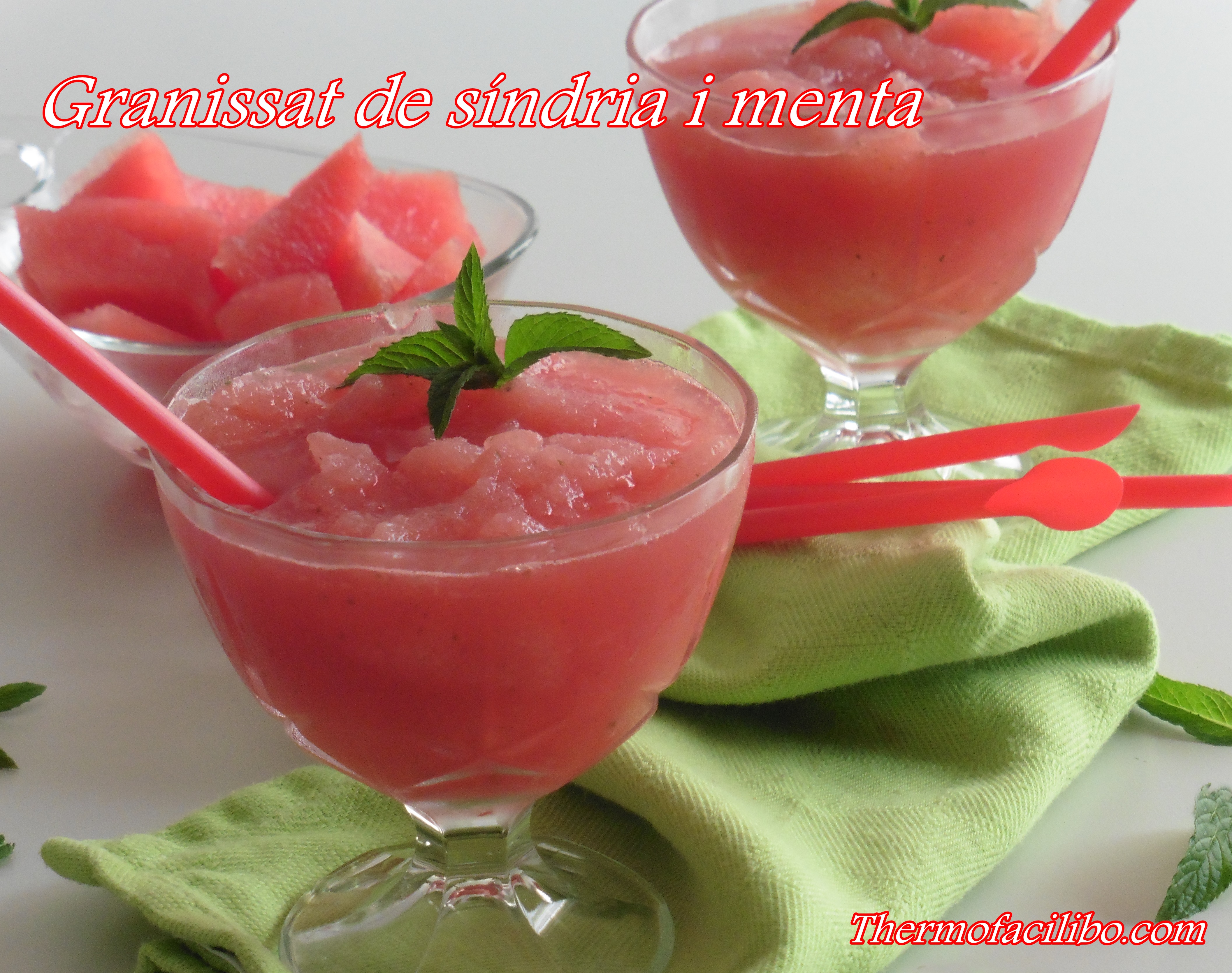Avui l’he preparat de síndria que amb el toc fresc de la menta m’agrada moltíssim. Ei!! i si algun cop us surt una síndria d’aquelles que no tenen massa gust, preparar aquest granissat és una bona alternativa. Us sorprendrà, queda boníssim encara que la síndria no sigui massa bona.