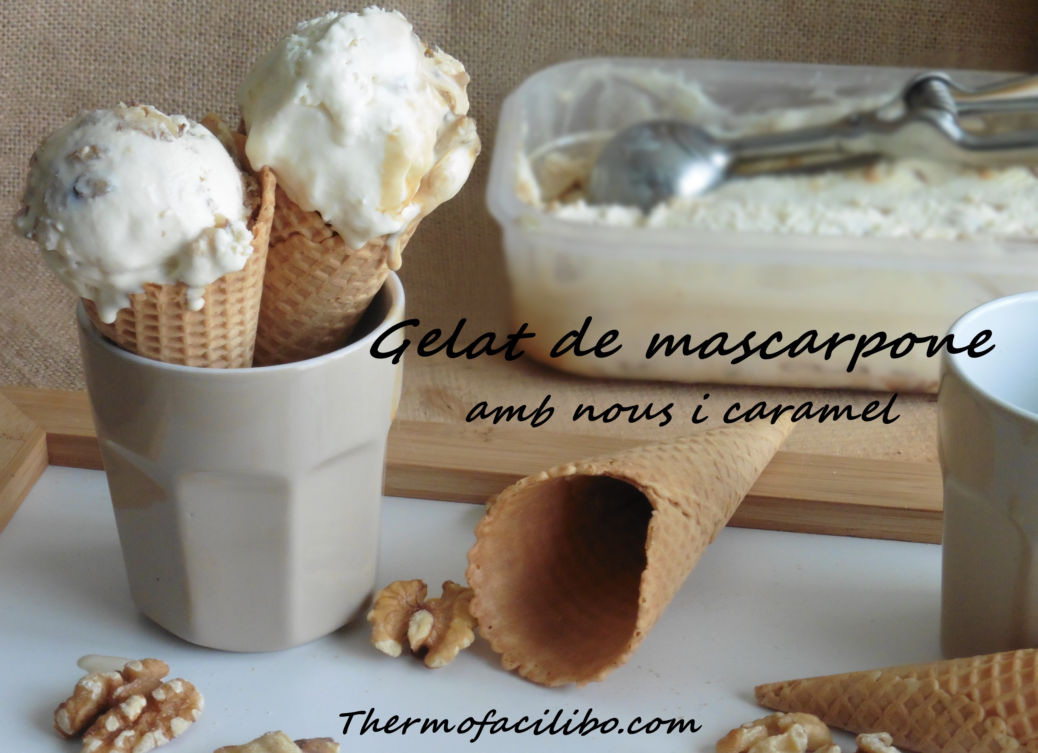 Un dels gelats preferits del meu marit és aquest d’avui, el gelat de mascarpone amb nous. Molt cremós, amb trossets de nous i caramel líquid, es fon al paladar. És un gelat digne d’alta gelateria, jejeje, però que qualsevol de nosaltres el podem fer a casa amb ingredients ben senzills i econòmics.