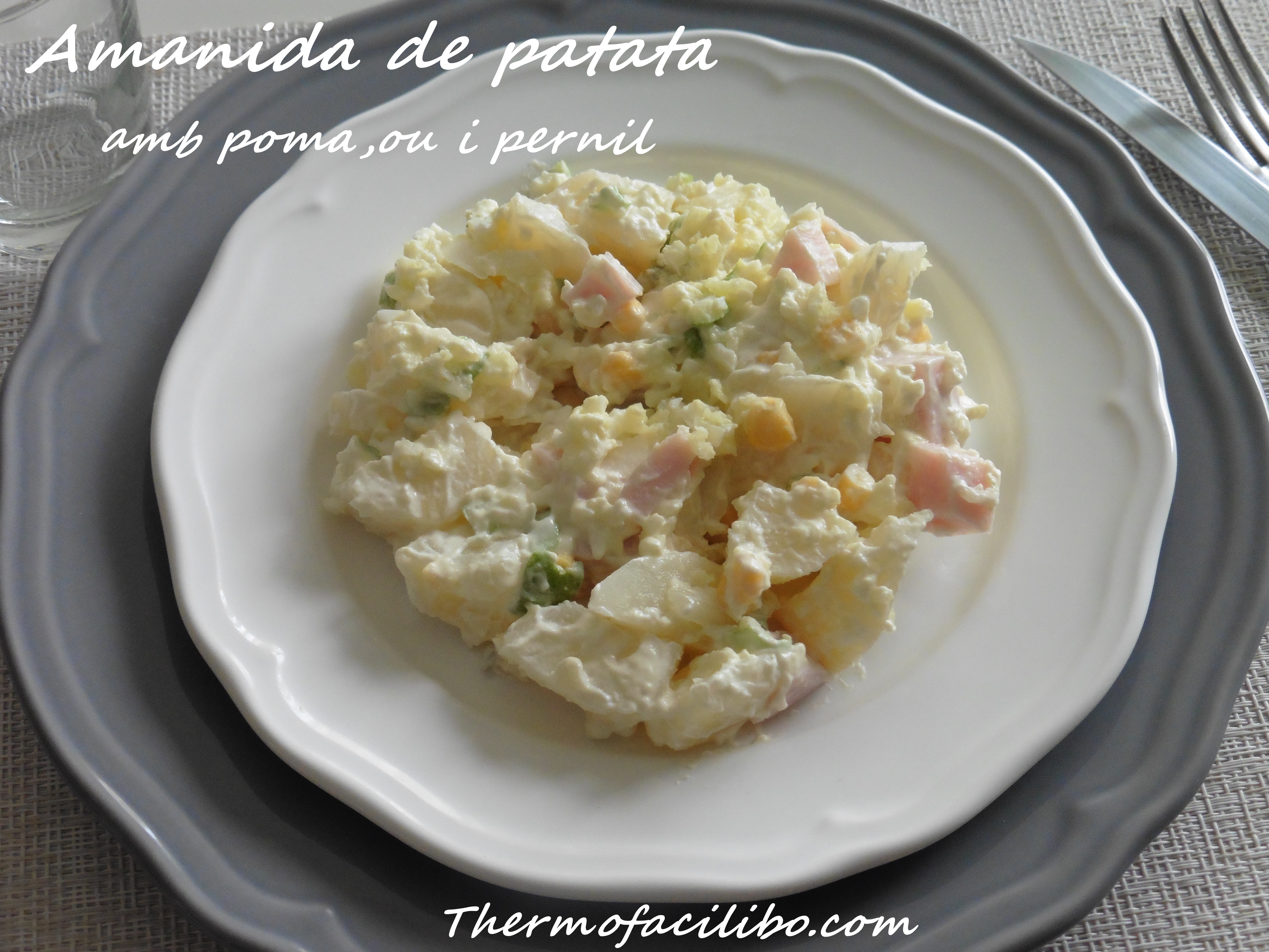 A vegades la mateixa recepta amb algun petit canvi la converteix en un plat ben diferent, com la d’avui. A la clàssica amanida de patata aquesta vegada li afegim el toc àcid de la poma Gran Smith, pernil dolç, blat de moro i maionesa al gust. Boníssima!! Una amanida fàcil, molt completa, econòmica i perfecte per deixar-la preparada amb antelació i consumir-la ben fresqueta.