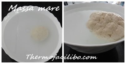 - Posem dins el got de la thermomix la llet, el llevat fresc, el sucre i la farina. Barregem 15 segons a velocitat 4. Retirem la massa del got i fem una bola. Col·loquem la bola en un recipient gran i cobrim amb aigua tèbia. Quan la bola floti i hagi doblat el seu volum, estarà llesta (aprox. 15 minuts).