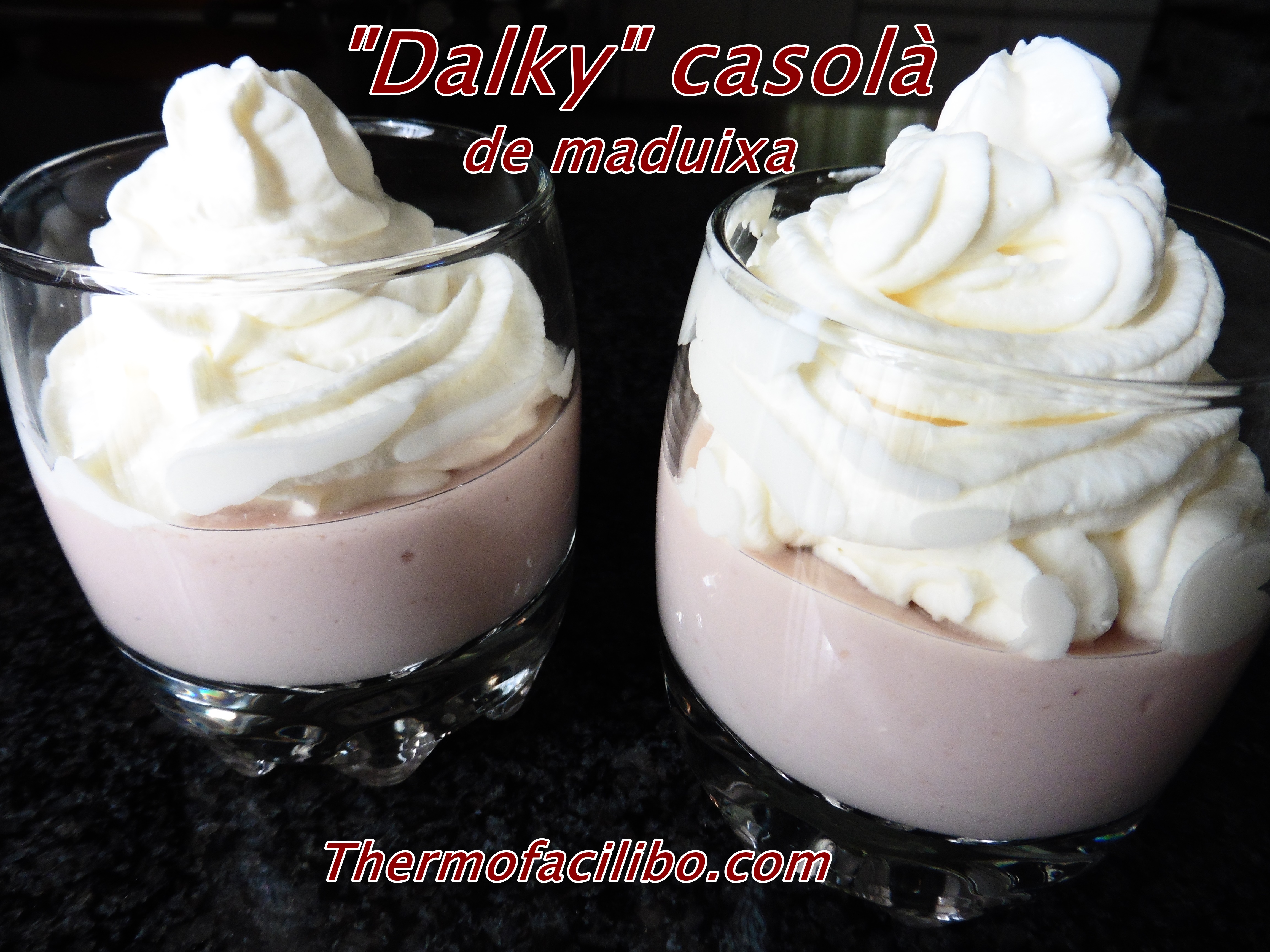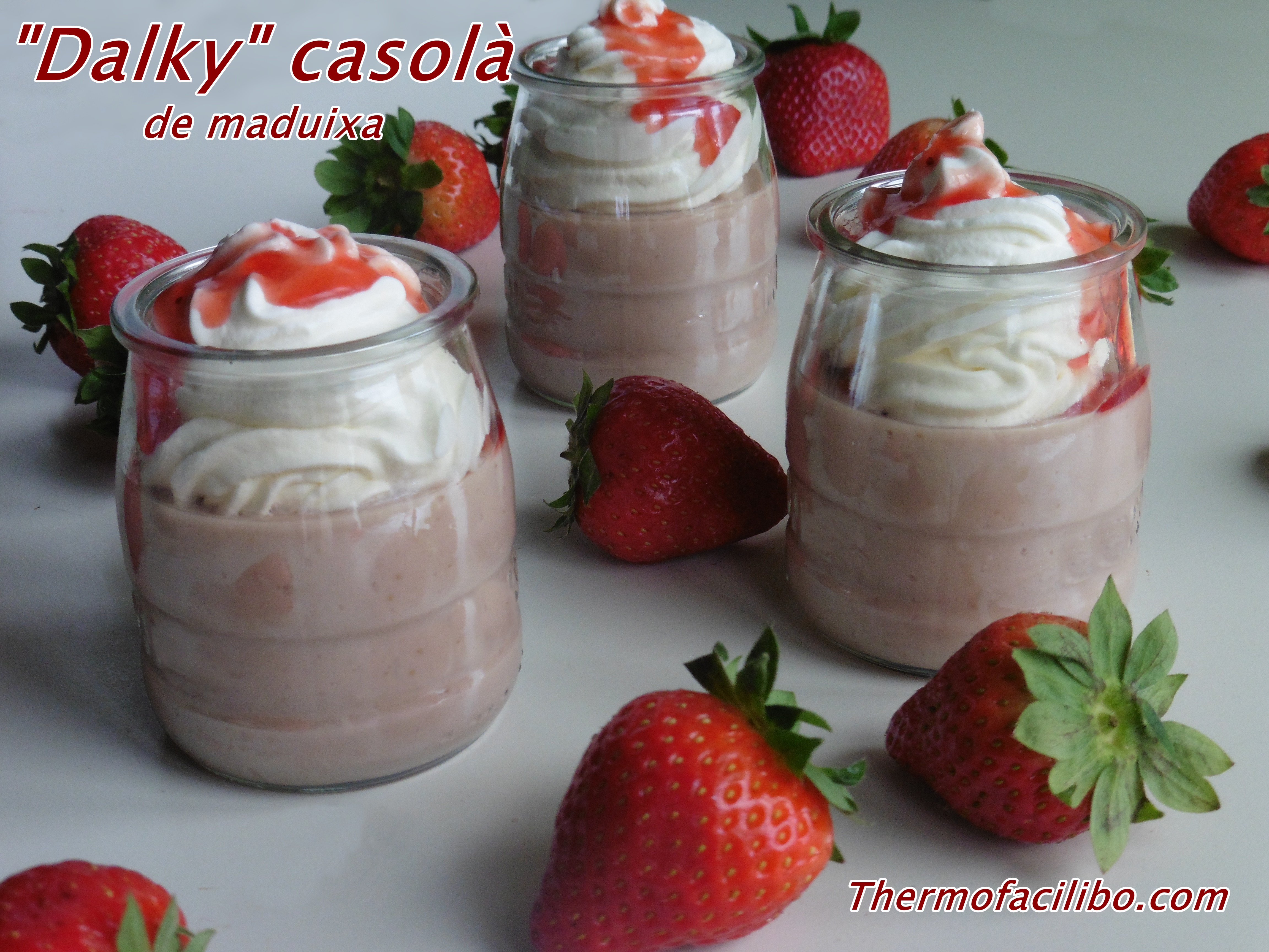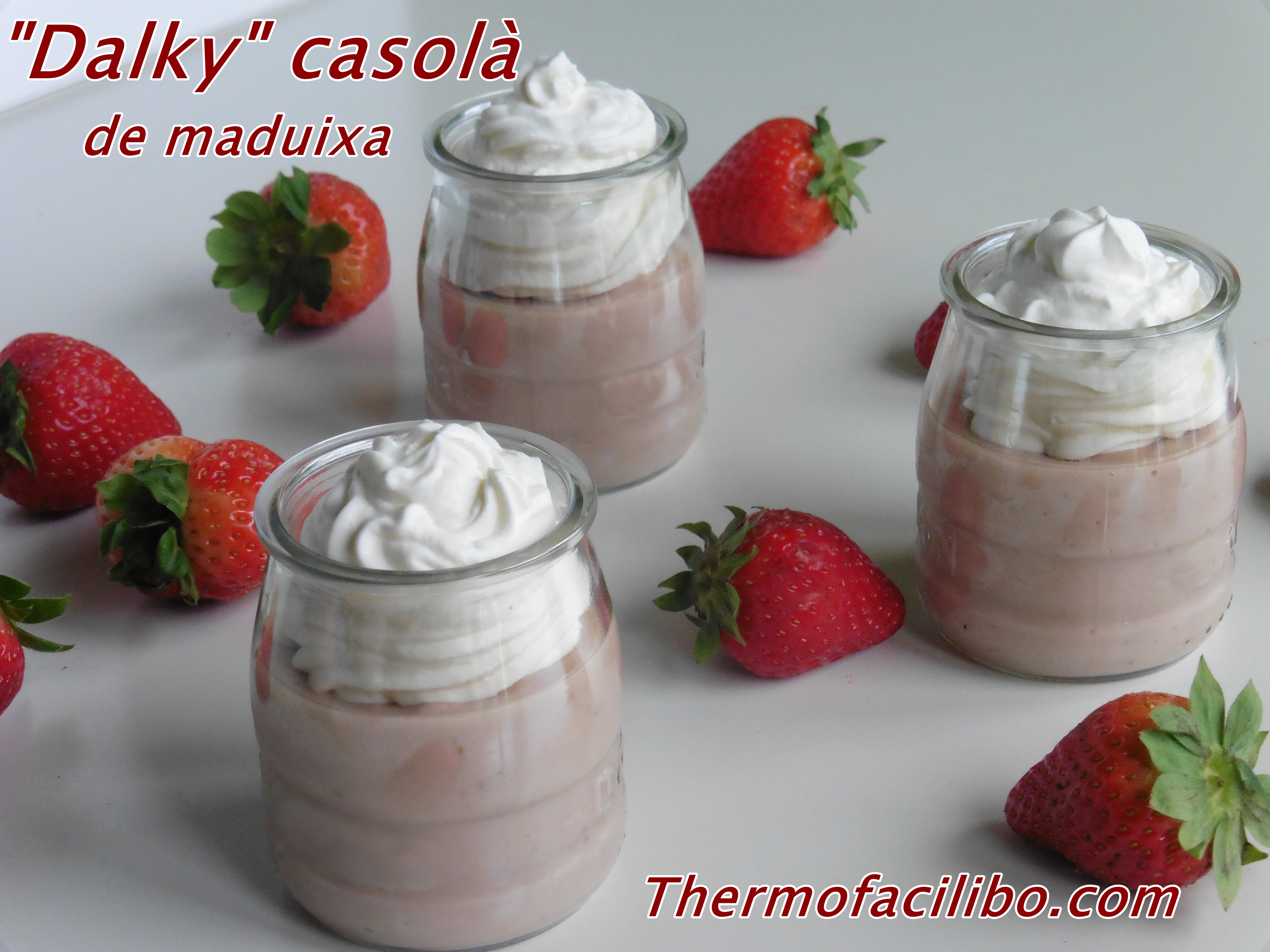 El cap de setmana, aprofitant unes maduixes que tenia, vaig preparar uns dalky de maduixa ben casolans. Són unes postres que cada any repeteixo algun cop durant la temporada de maduixes i és que queden uns gotets molt vistosos a més de boníssims.