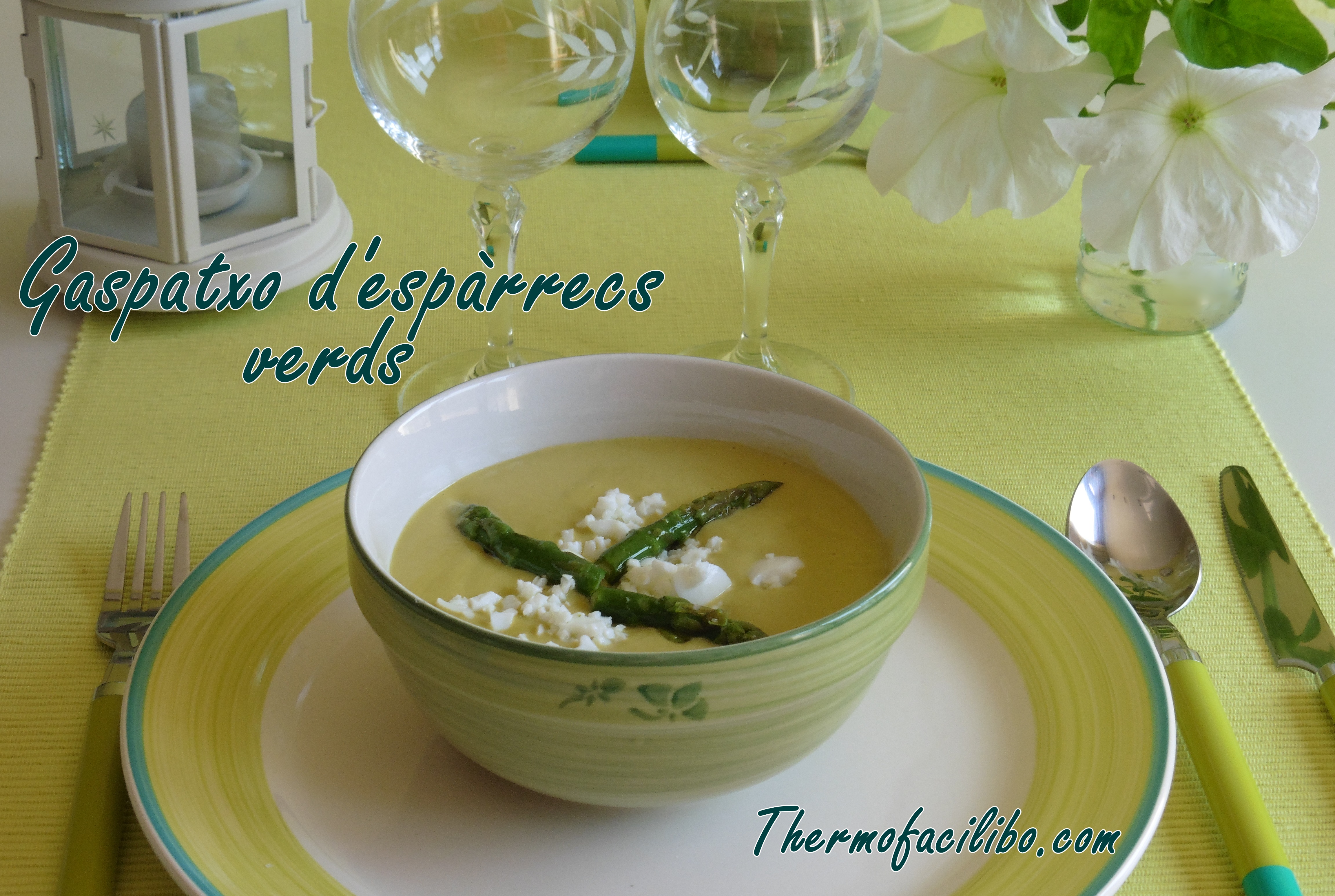 Els espàrrecs verds m’agraden de totes maneres, a la planxa, al forn, al vapor, amb crema….. o com la recepta d’avui, en un gaspatxo diferent i ben refrescant per combatre la calor d’aquests dies. Un entrant perfecte per dinars o sopars de diaris o festius.
