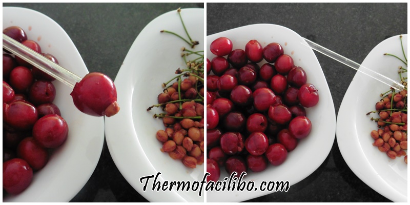 - Sabeu una manera fàcil i ràpida de retirar els pinyols de les cireres? Doncs amb un boli bic, els de tota la vida. Us explico; retirar el cartutxet de tinta del boli i netejar el tub ben net, aleshores, ja tindrem l’aparell ideal per aquest afer. Només cal clavar el tub per un cantó de la cirera i el pinyol, sortirà sense problemes per l’altre, tal i com es veu a la foto.