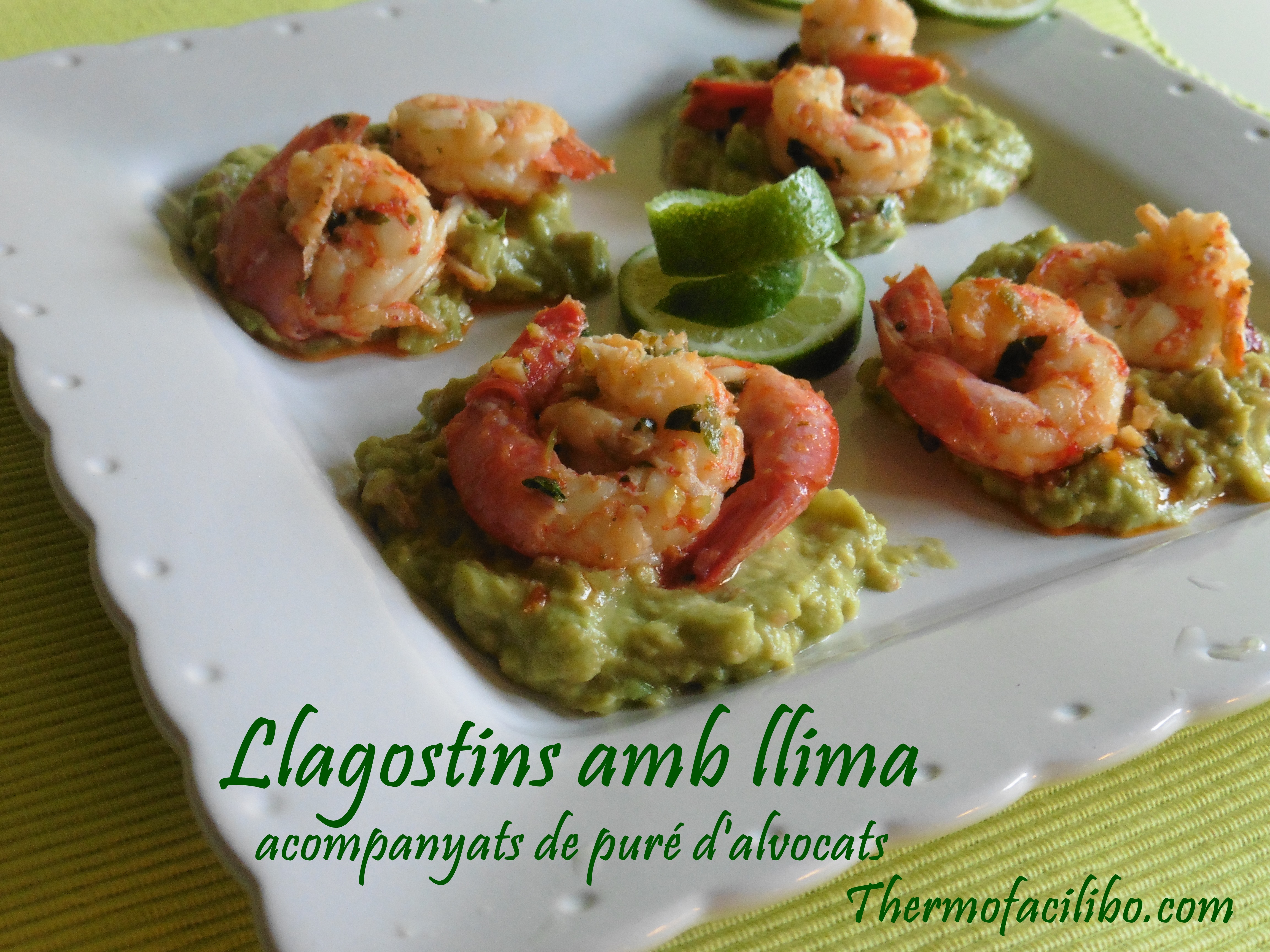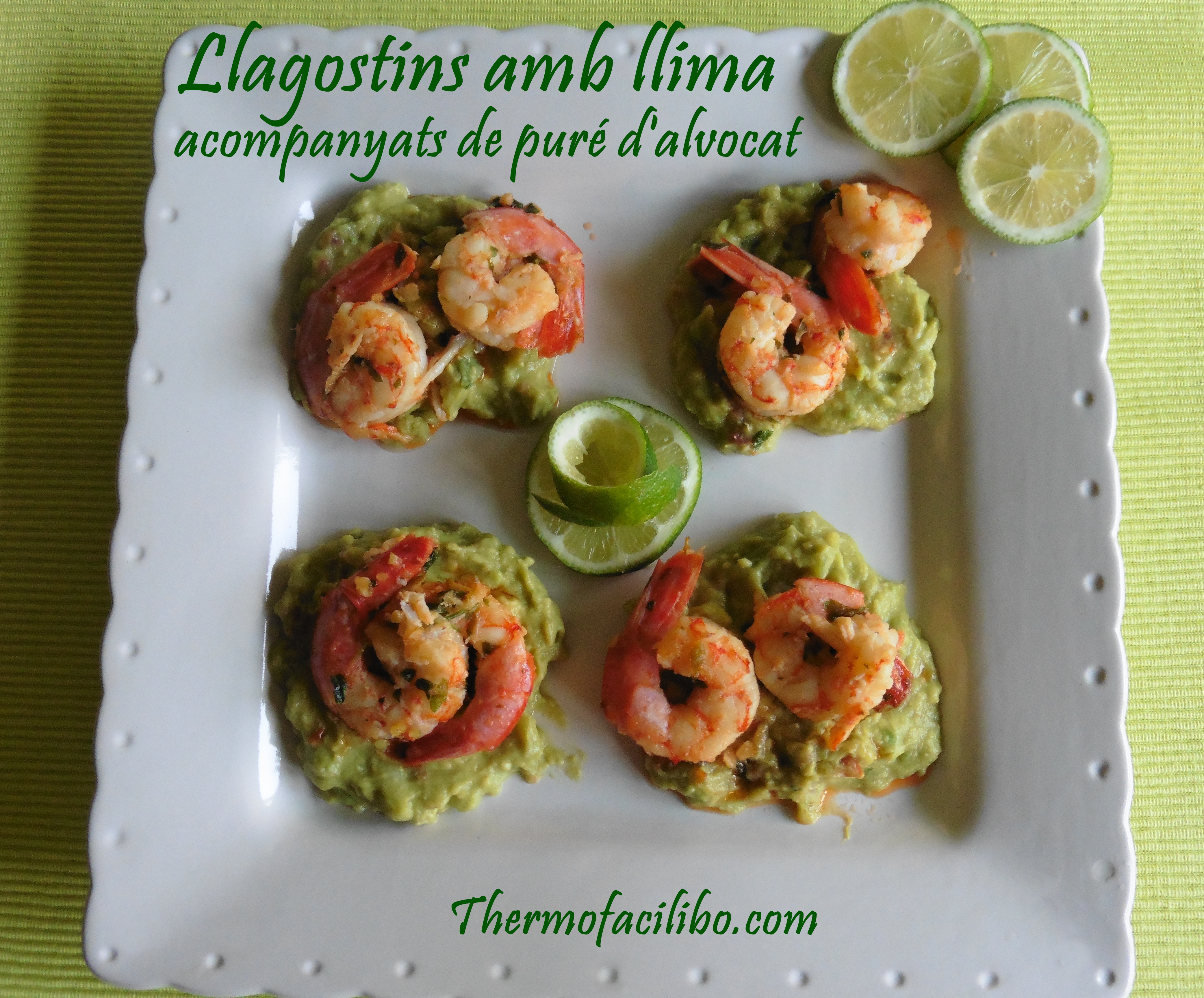 - Servir els llagostins sobre la salsa d’alvocats i decorar el plat amb llima.