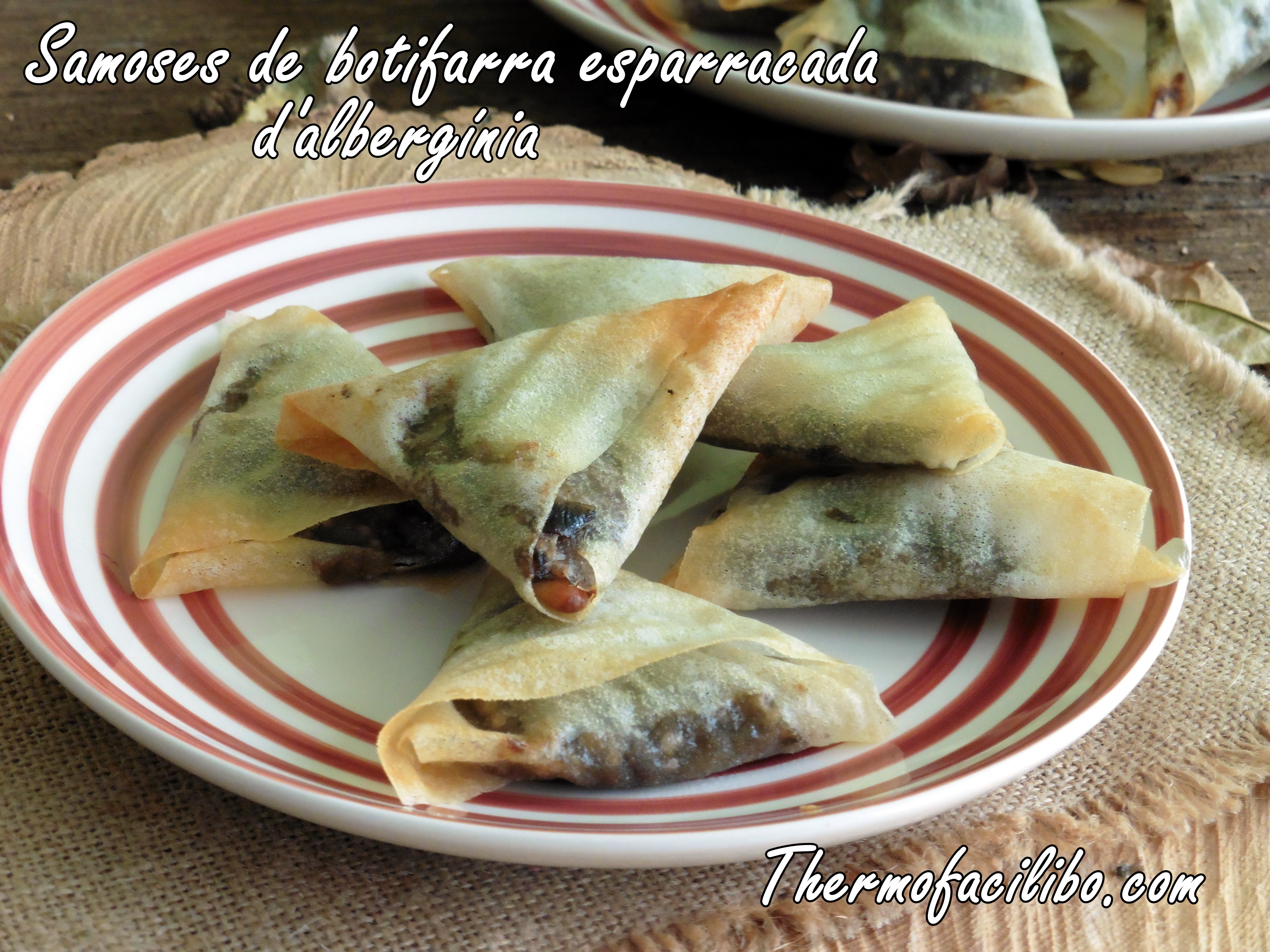 La recepta d’avui, podríem dir que són unes samoses estil occidental. Estan fetes amb pasta brick que aconsegueix una textura cruixent molt similar a les samoses orientals. I el farcit, és una original «botifarra esparracada d’albergínia». Per disminuir calories, estan cuites al forn en lloc de fregides.