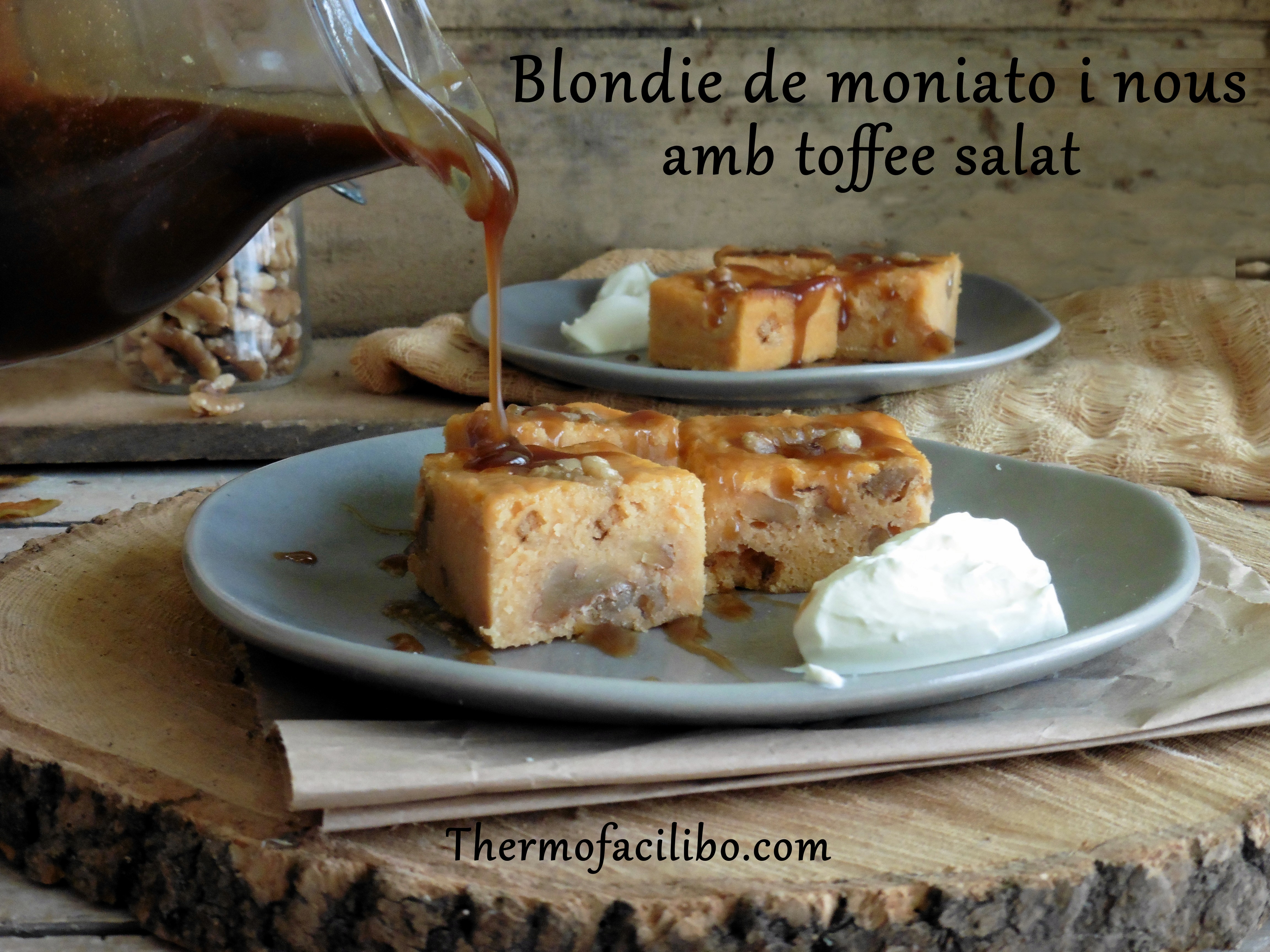 d’elles ha sigut el berenar d’aquesta tarda, un blondie acompanyat amb salsa de caramel (toffee) salat per llepar-se els dits!!