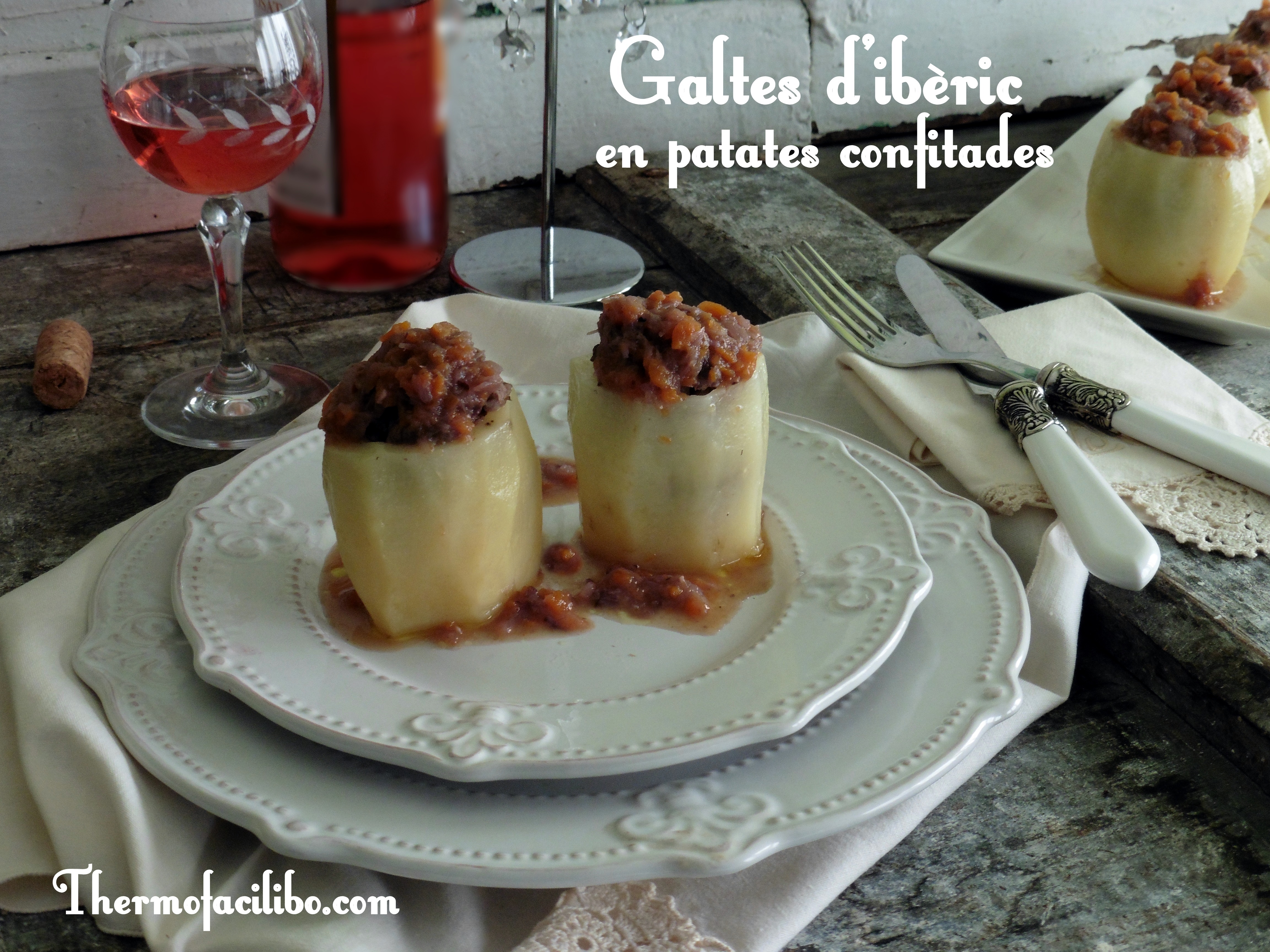 He preparat diversos canapès d’entrats, unes patates confitades farcides de galtes, unes postres, i com no, un pastís. De les postres i el pastís en parlaré en les properes entrades d’aquesta setmana, avui us deixo el pas a pas d’elaboració de les patates confitades farcides de galtes. El més laboriós és preparar les patates perquè quedin boniques a taula, però la recepta és ben senzilla.