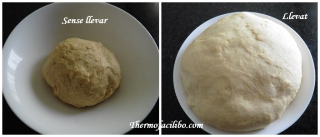 - Retirar la massa dins un bol lleugerament enfarinat, tapar amb un drap de cuina i deixar-la reposar fins que dobli el seu volum, durant 2½ o 3 h com a mínim. A més repòs, més esponjós serà el resultat final. Mantenir-la en un lloc lliure de corrents d’aire, com ara dins el forn apagat.