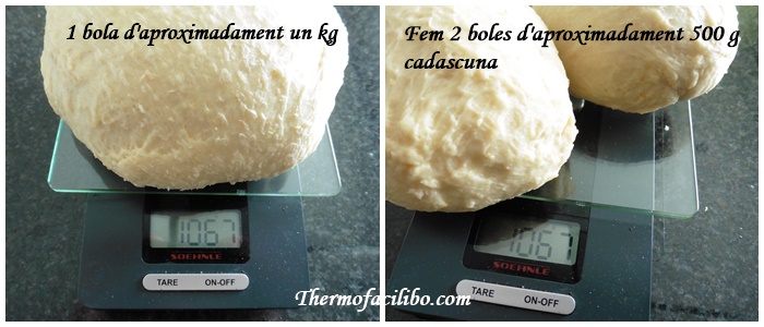 - Dividir la massa en 2 boles, per fer 2 tortells de ½ kg.