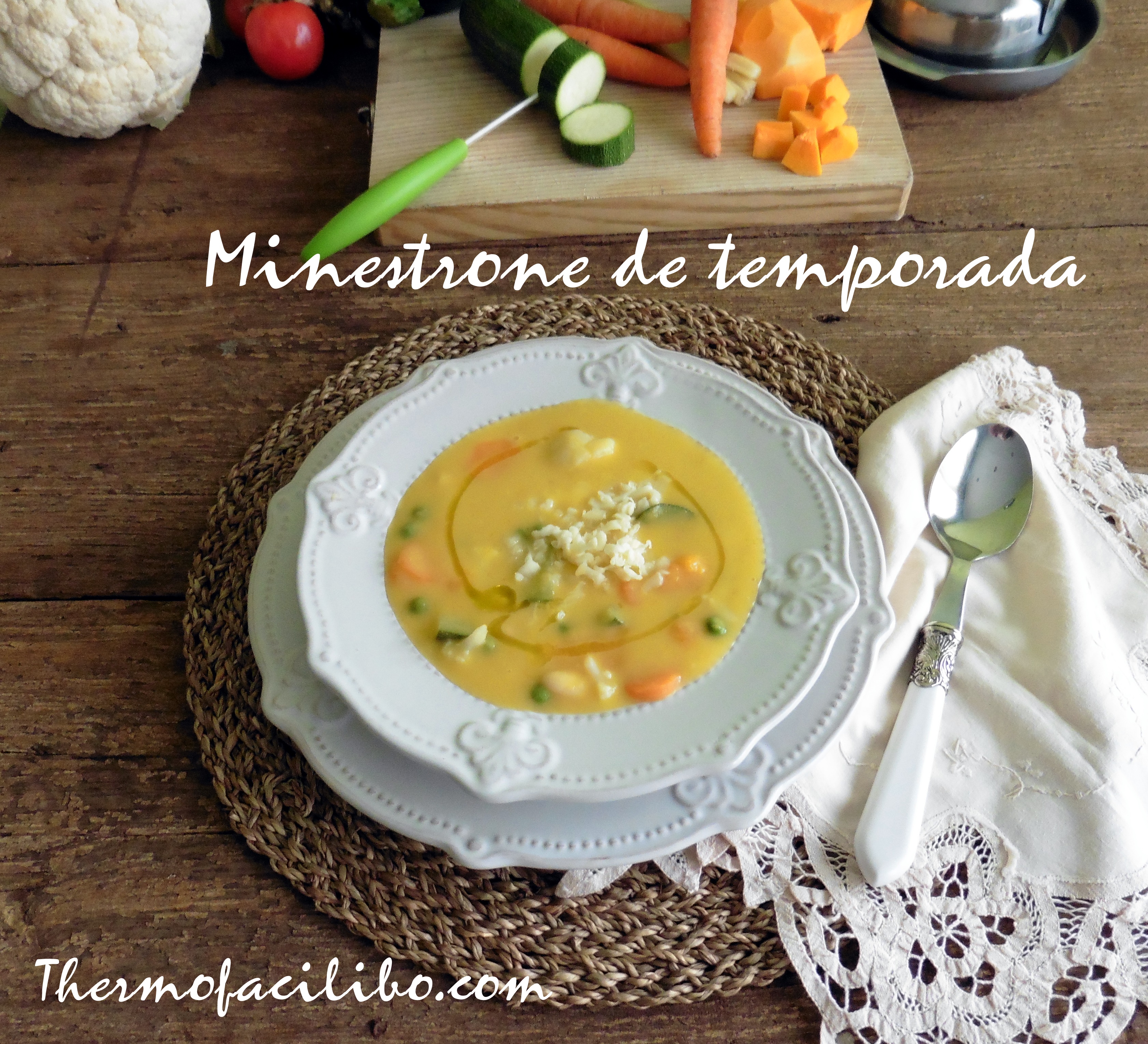 El minestrone és una sopa de verdures d’origen italià. Es prepara amb verdures tallades petitones i normalment s’aprofita les de temporada. A vegades si afegeix pasta, arròs, carn o formatge ratllat, com avui.