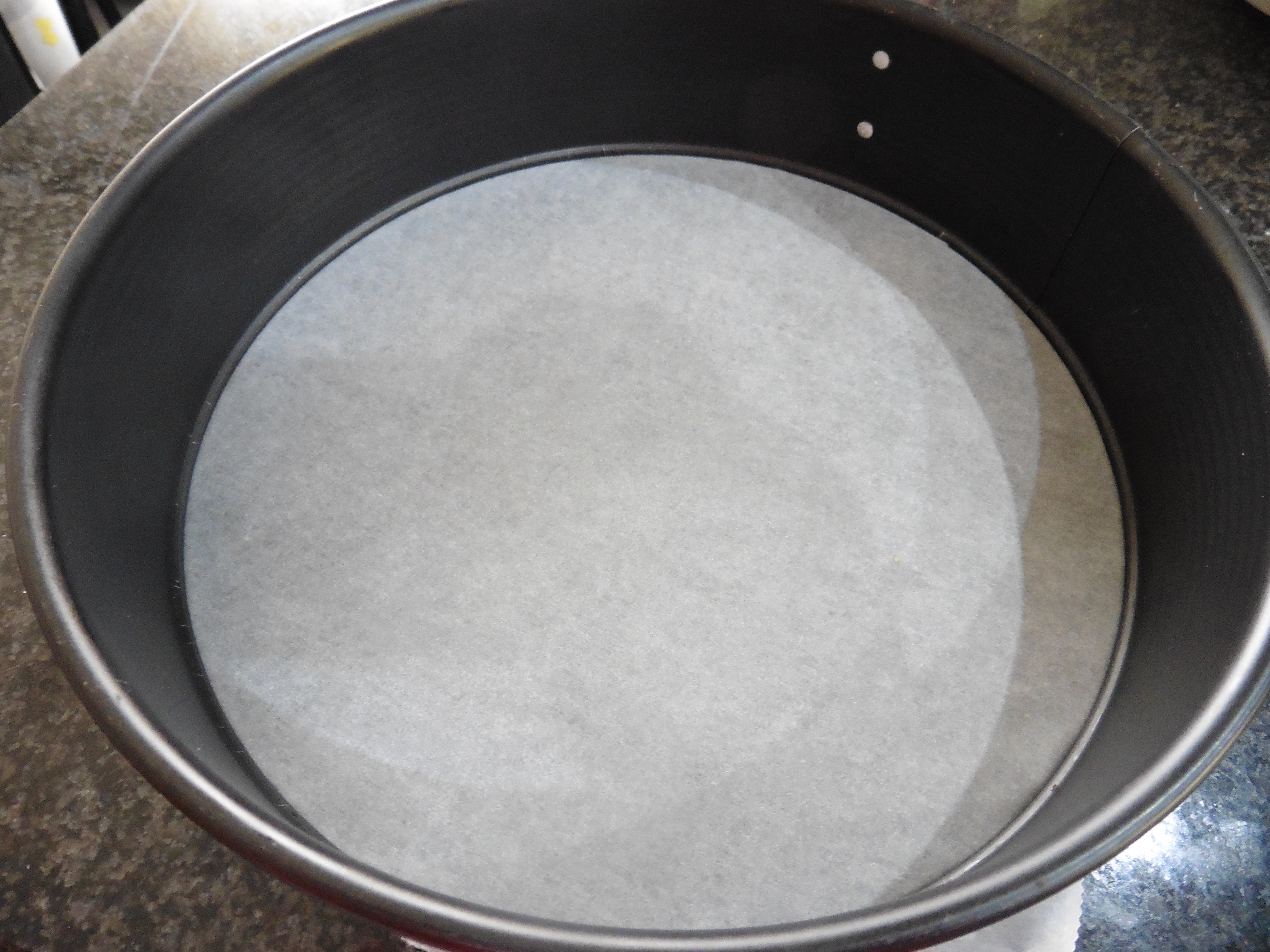 - Folrar la base d’un motlle desmuntable de 20 cm de diàmetre amb paper de fornejar i untar els laterals amb mantega. Reservar.