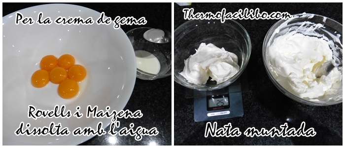 - La crema de gema, dins un bol i també reservada a la nevera.