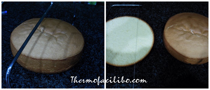 - Tallar el pa de pessic en 3 discs iguals. Jo m’ajudo d’una lira, l’aparell que es veu a la foto, perquè així queden tots els discs del mateix gruix.