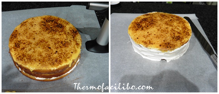 - Repartir sucre morè per tota la superfície del pastís i amb l’ajut d’un «soplet» cremar-lo.