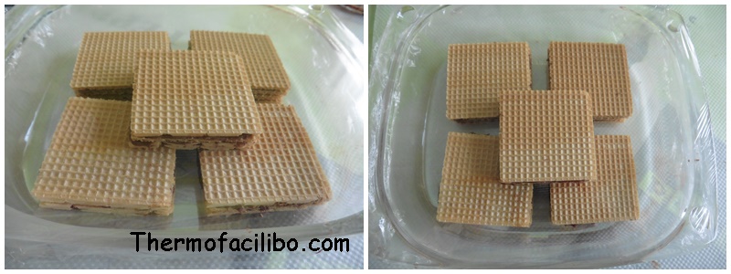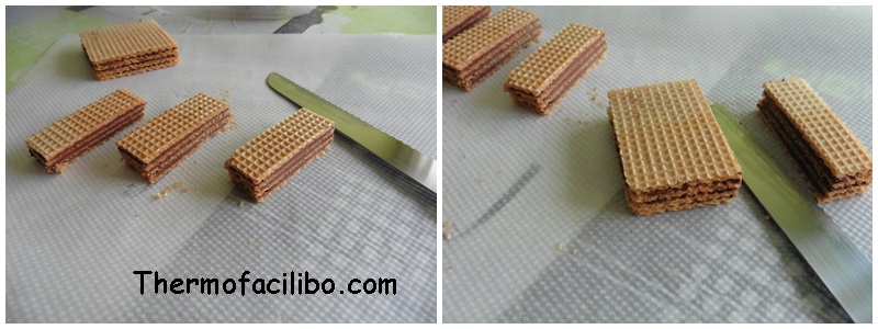 - És a dir, fer blocs de 4 capes de galetes, untades amb crema de cacau al mig. Acabar amb galeta.