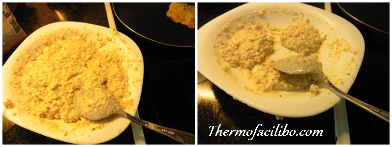 - Afegir la barreja del got al bol amb la verdura i el parmesà i barrejar bé, que quedi tot ben integrat. Deixar reposar a la nevera, tapat amb film transparent, un mínim de 30 minuts. La mescla en reposar agafarà consistència, però si a l’hora de fer els pancakes encara és massa tova, afegir 1 o 2 cullerades de pa ratllat. (Sense passar-nos o quedarà massa eixuta). Jo la deixo toveta.