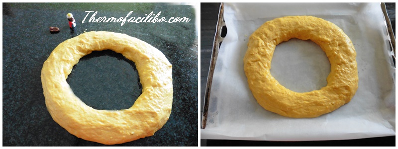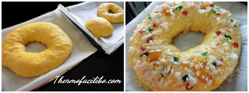 Aquesta recepta la vaig descobrir al blog Kanela y Limón (feta sense thermomix) i em va captivar. Des d’aleshores, l’he fet més d’un cop, és una recepta increible. Una de les avantatges que trobo, és fer el primer llevat en fred, és a dir, es prepara la massa el dia anterior i es deixa tota la nit llevant. Al matí, haurà triplicat el seu volum i llavors només caldrà donar forma als tortells, deixar fer el segon llevat, decorar i enfornar. Aleshores ja tindrem llest un esponjos i deliciós tortell de reis per esmorzar.