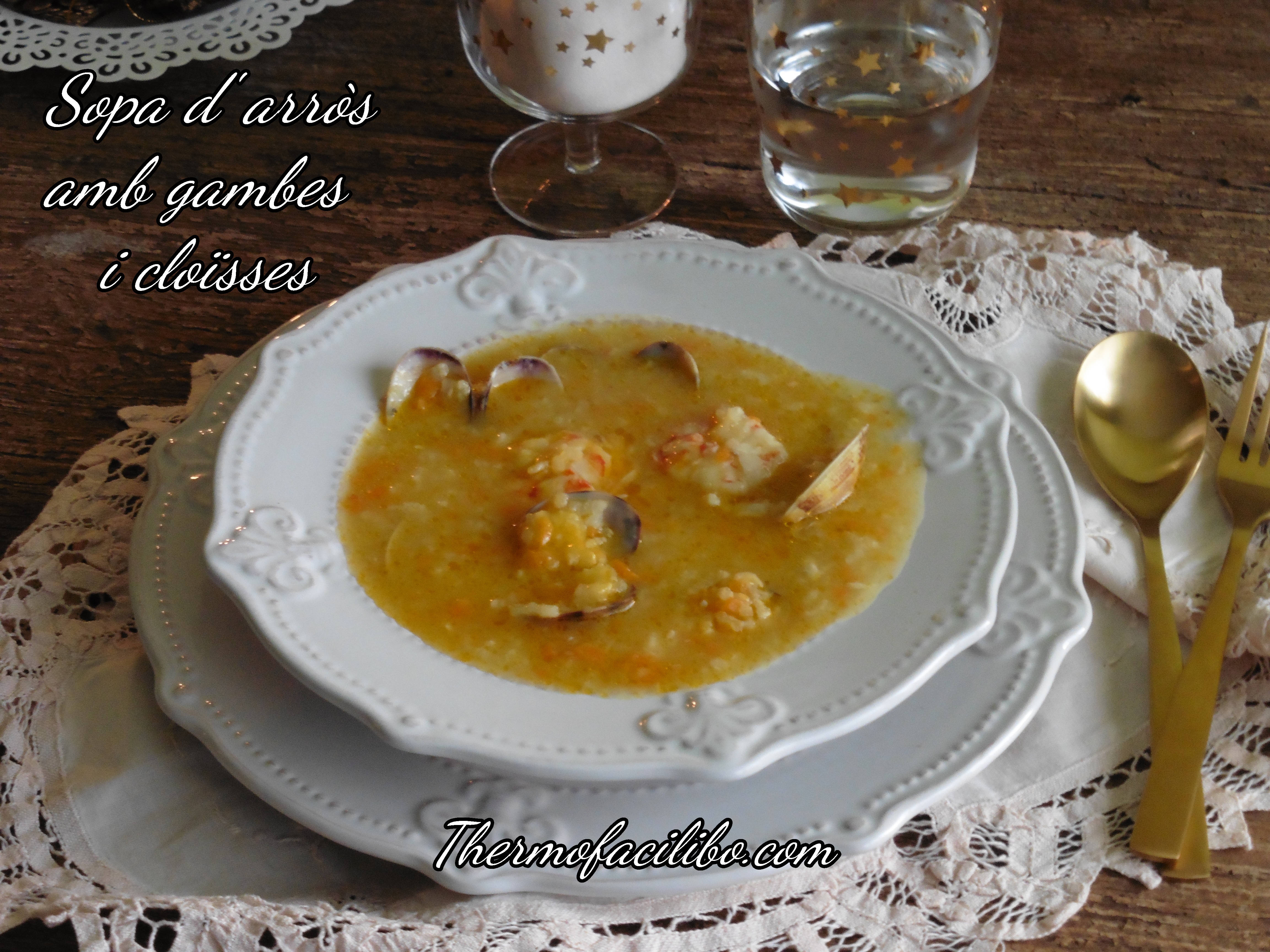 La sopa d’arròs amb gambes i cloïsses és perfecta per fer entrar el cos en calor. A més, està boníssima i es pot preparar amb antelació, que també és important.