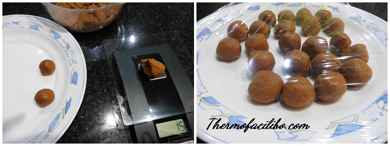 - Abocar la massa en un bol i fer boletes petites (15 g cadascuna aprox.) Un cop fetes tapar-les amb film transparent i reservar-les al congelador mínim una hora.