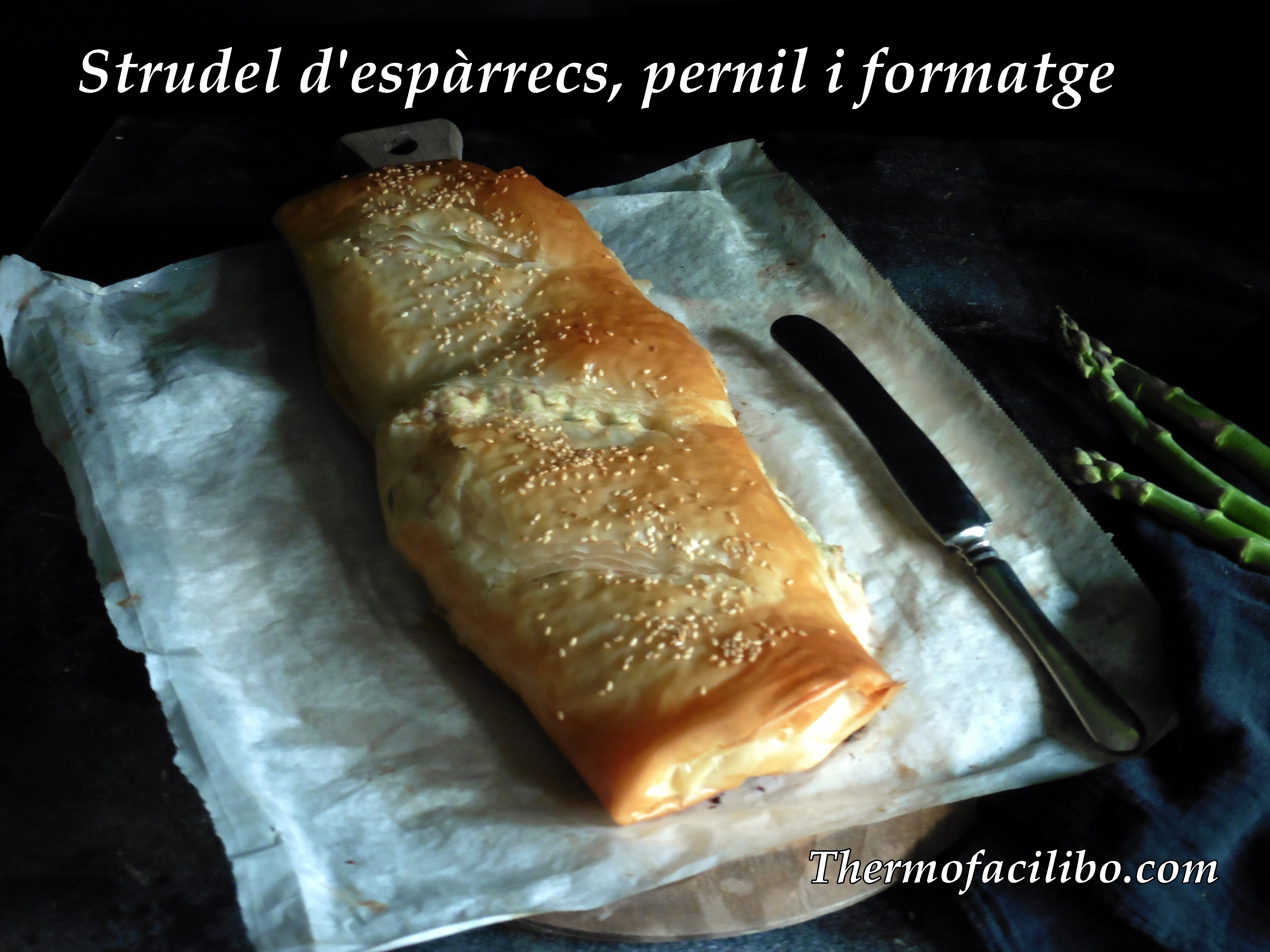 Avui he fet un strudel farcit d’espàrrecs, pernil i formatge ….. Una manera boníssima i ben diferent d’introduir els espàrrecs en els menús d’aquests dies.