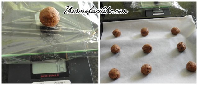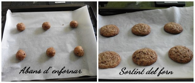 - Fer boletes d’uns 16-20 g cadascuna i col.locar-les en safates de forn prèviament folrades amb paper vegetal, deixant una separació de 4 cm., entre cada boleta. Dins els forn ja agafaran la forma plana.