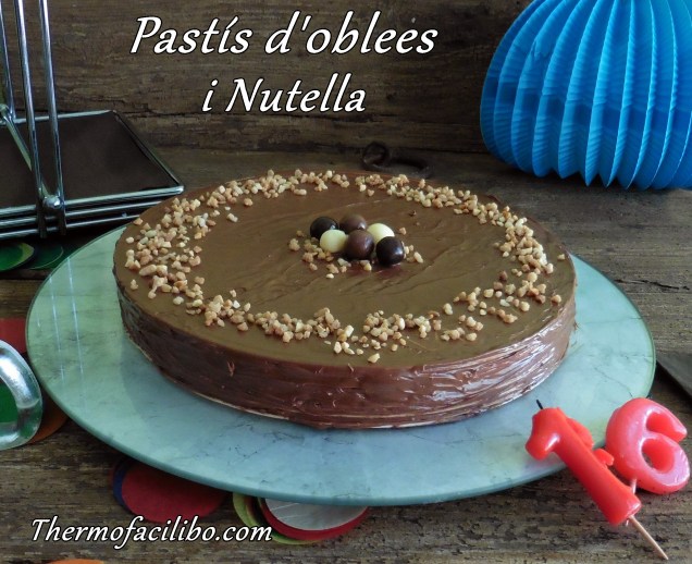 Avui estem de celebració, és l’aniversari d’en Marc, el meu fill petit. Així que malgrat ser dilluns, avui toca pastís. Bufarem les espelmes els de casa i serà el diumenge vinent quan ens reunirem amb la resta de la família, per celebrar-ho tots junts. Per tant, he optat per un pastís senzill, el cap de setmana ja en faré algun de més elaborat. L’escollit ha sigut el pastís d’oblees i Nutella, també conegut com a pastís Huesitos, ja que recorda moltíssim el gust i la textura cruixent de les famoses xocolatines.