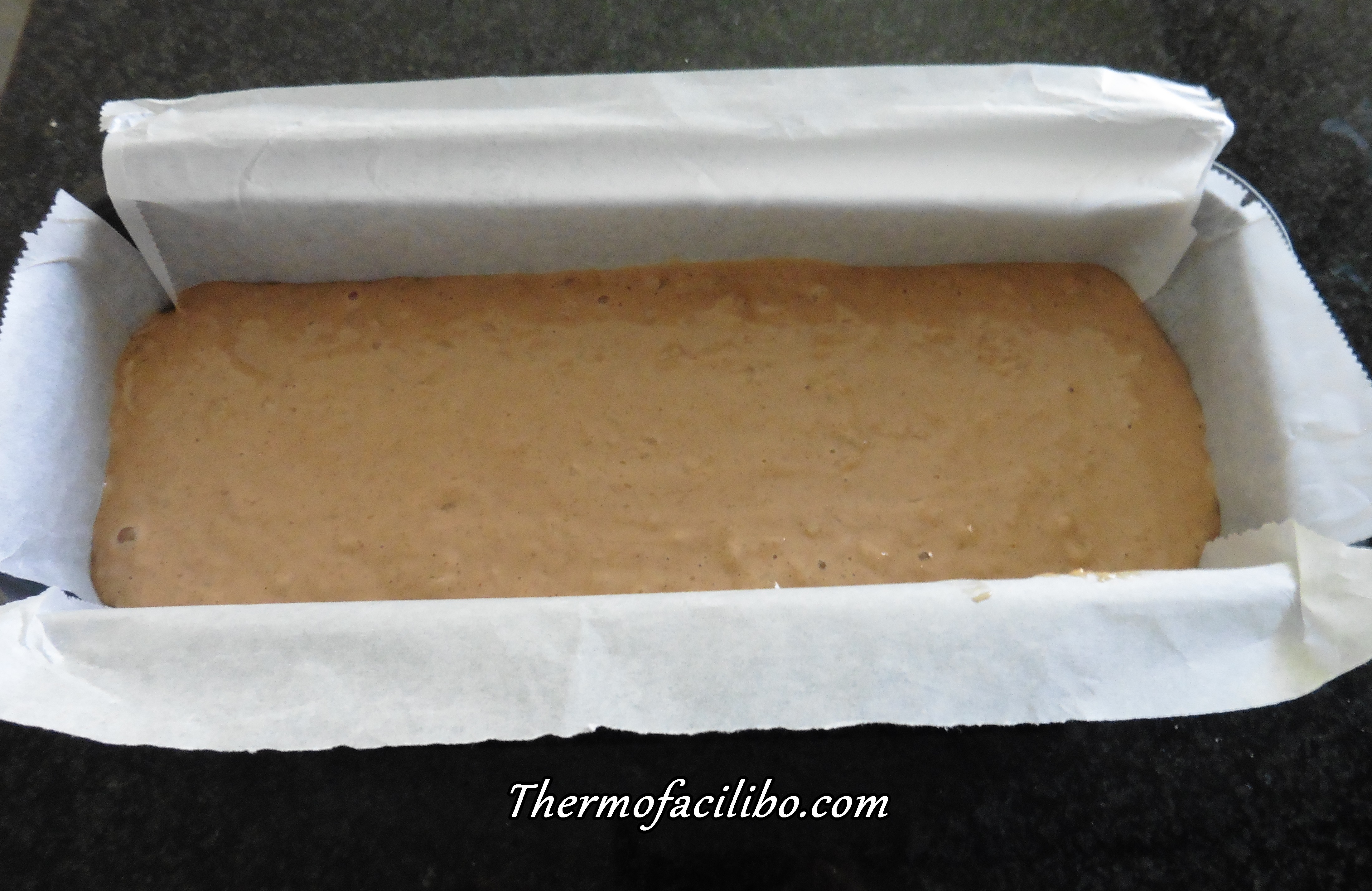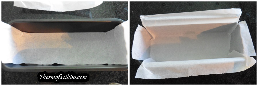 - Preescalfar el forn a 180º calor dalt i baix. Folrar un motlle de cake de 1½ litre de capacitat amb dues tires creuades de paper vegetal. Reservar.