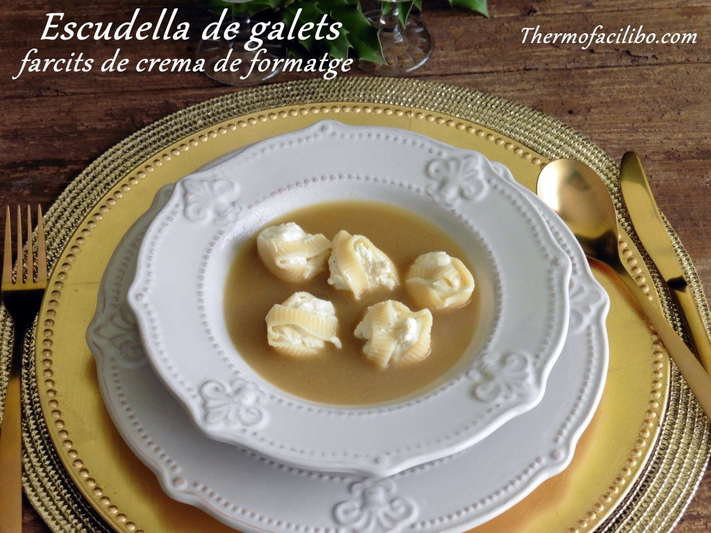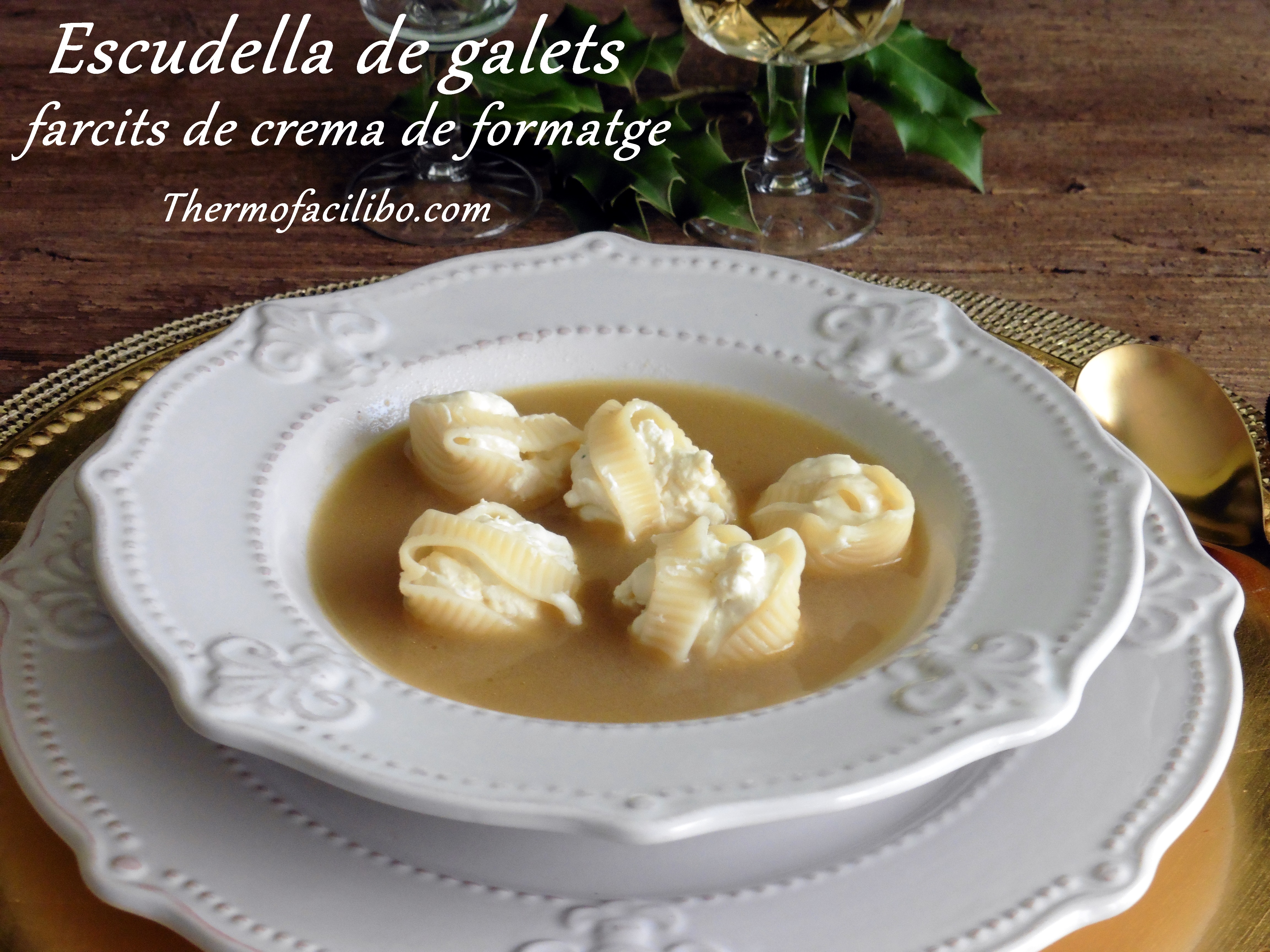 A casa ens agraden molt els plats de cullera i els incloc moltes vegades en els menús, tant en els de diari com en els festius. Avui per exemple, han vingut els avis a dinar, i si nosaltres som «sopers», ells ni us comento, jeje. Així que he preparat aquesta escudella amb galets farcits de crema de formatge…. És un plat senzillament deliciós que ha enamorat a tots. Us explico;