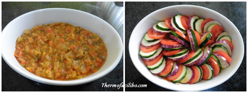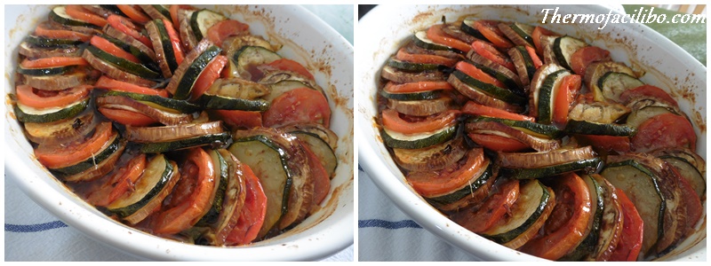 És un plat senzill de fer…. Us explico; S’ha de fer un sofregit de verdures com a base i cobrir aquest amb rodelles d’albergínia, carbassó i tomàquet, col·locades sobreposades tot formant un cercle. Aleshores, només cal enfornar i regar amb una deliciosa vinagreta.