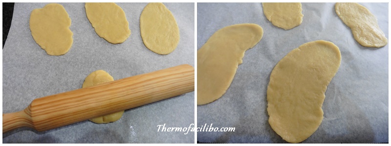 - Deixar reposar la massa durant 10 minuts. Abocar sobre una superfície de treball i fer petites boles d’uns 33-35 g cadascuna. Amb un corró de cuina estirar la massa, donant forma d’orella i deixar-la tan fina com sigui possible.