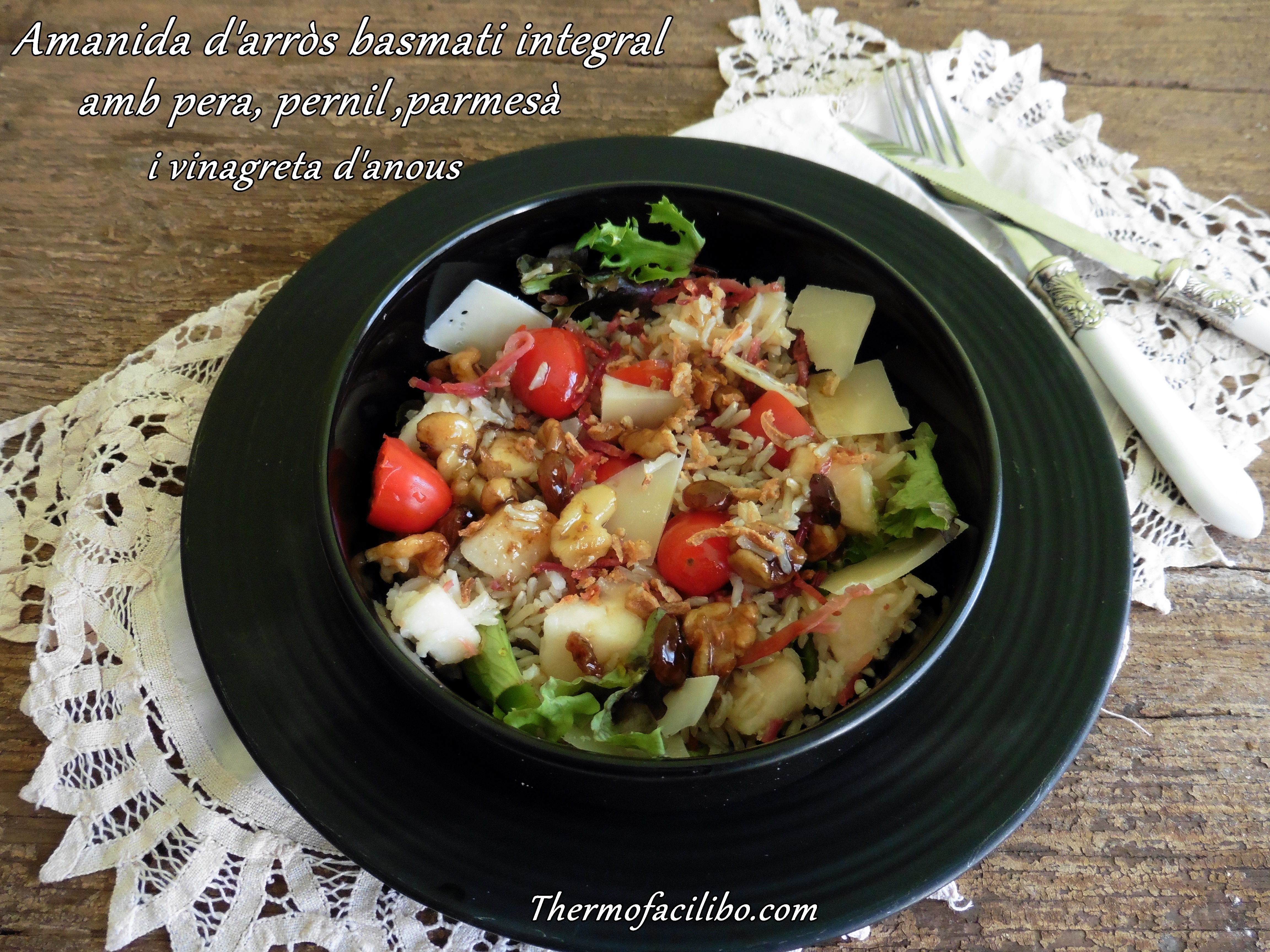 Quan utilitzo arròs per preparar amanides sempre escullo la varietat d’arròs llarg o arròs basmati i gairebé sempre em decanto per la varietat integral. Avui l’he utilitzat preparat aquesta deliciosa i completa amanida. Espero que us agradi!!!