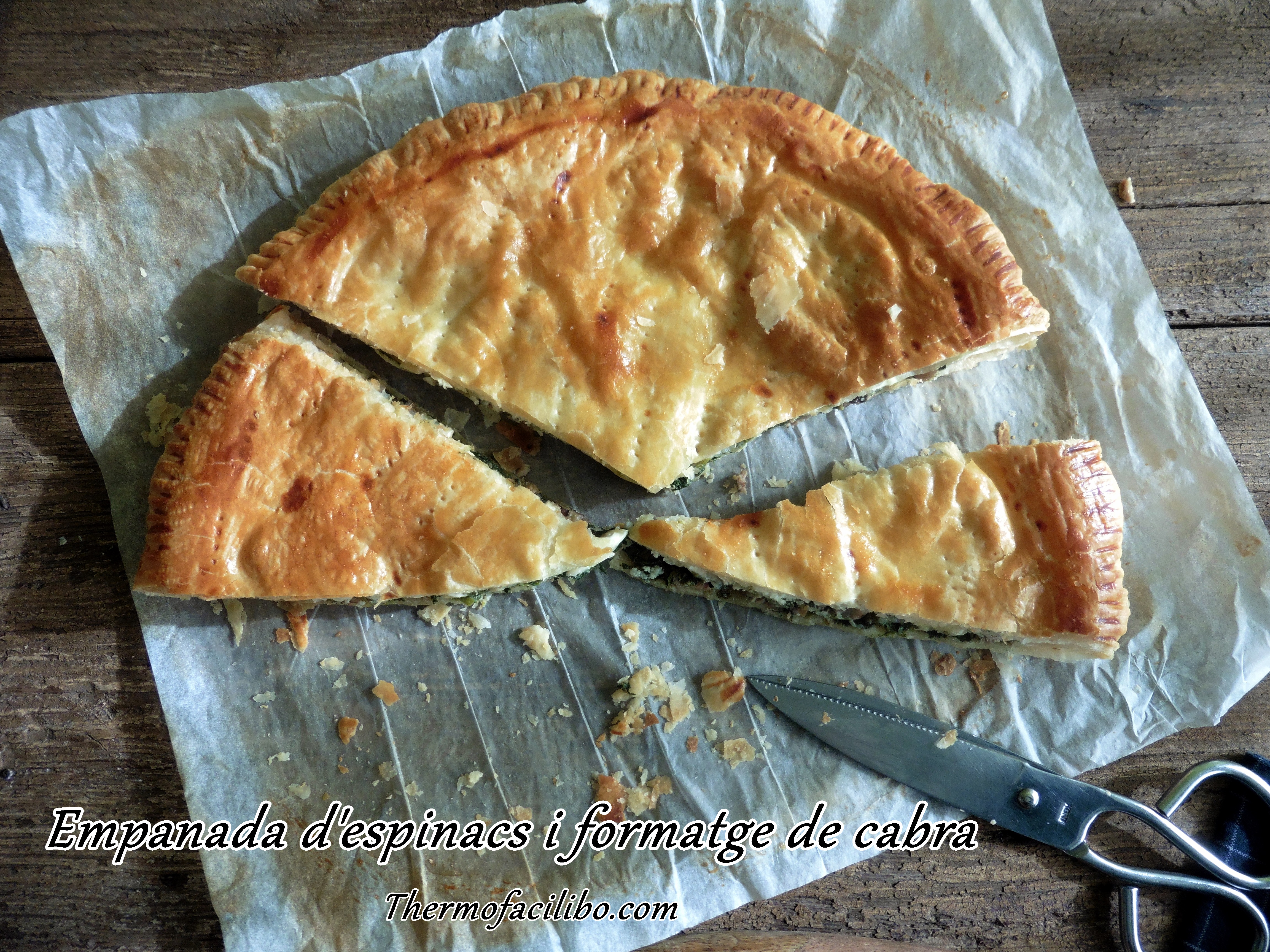Avui les he utilitzat per fer aquesta «empanada» farcida amb crema d’espinacs, panses, pinyons i formatge de cabra. Aquest últim ingredient li dóna el toc final….Als meus fills els i agrada molt i per això ni poso força quantitat. Espero que us agradi!!!