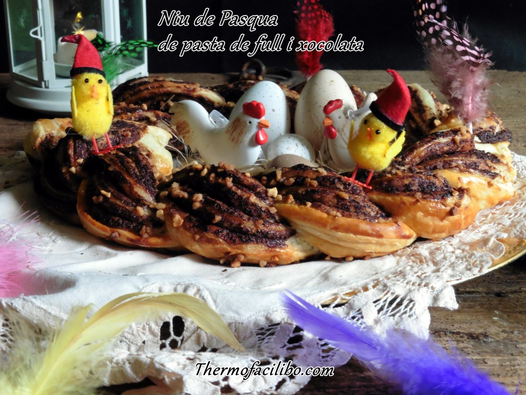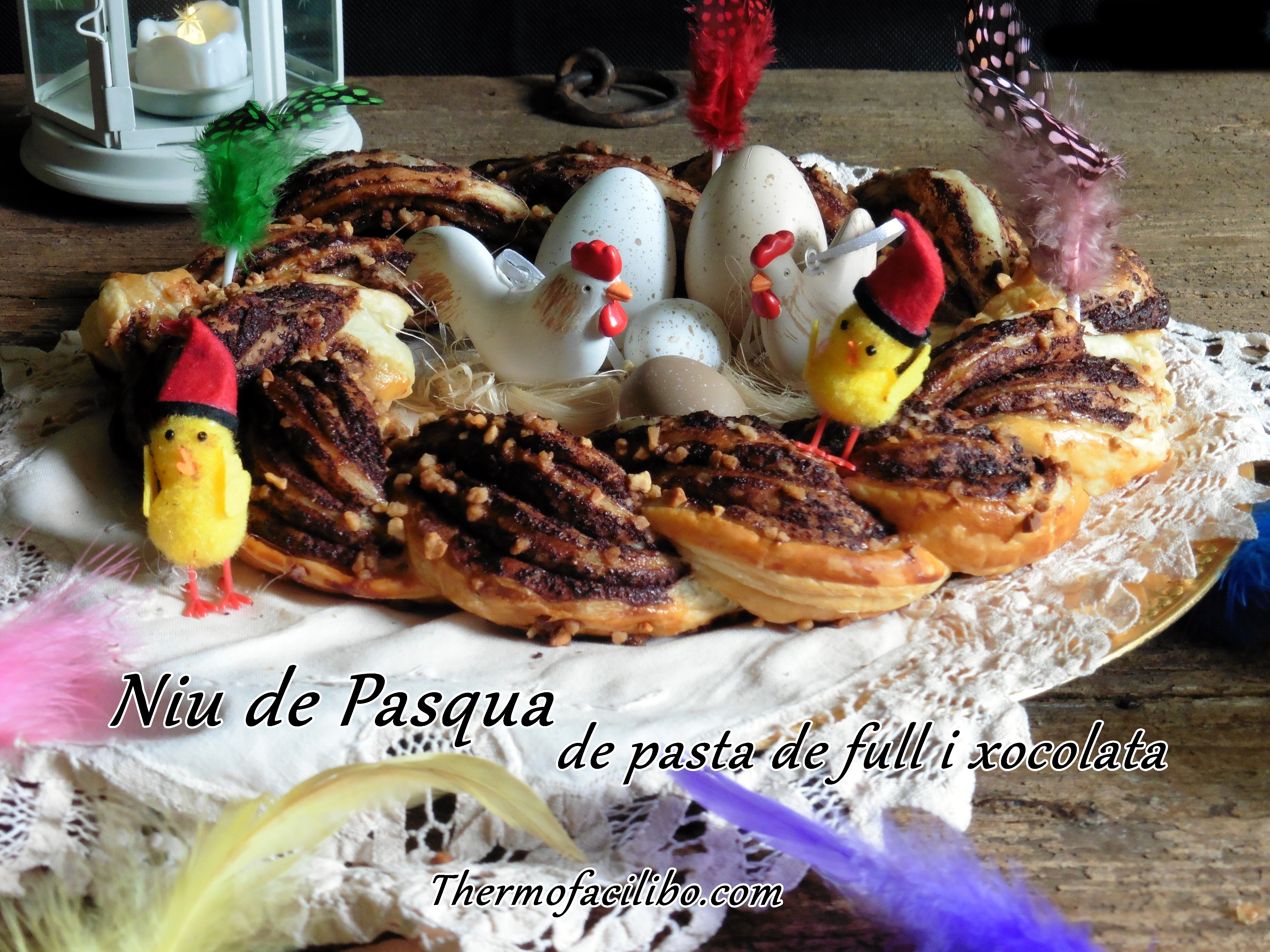 Avui us porto un niu de Pasqua fet amb pasta de full i xocolata. Serà una mona exprés, fàcil i súper ràpida. Això sí, boníssima i ben bonica. Vinga…. Si no teniu mona…. Potser encara hi sou a temps!!!! #joemquedoacasa