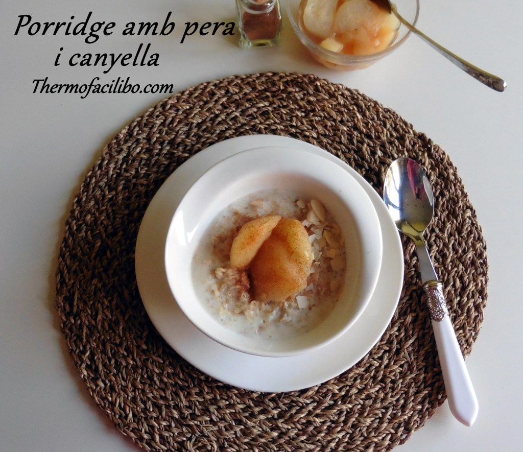 Personalment m’encanta esmorzar porridge i moltes vegades em preparo la meva ració individual. Però aquesta setmana, els de casa i per unanimitat, m’han demanat porridge pels esmorzars de cada dia. Així que no m’ho he fet repetir i porridge cada dia, jejje. Això sí, he anat variant, avui l’he fet amb llet semi i acompanyat de compota de pera (m’han anat perfectes unes peres molt madures que tenia) i ametlles làminades.