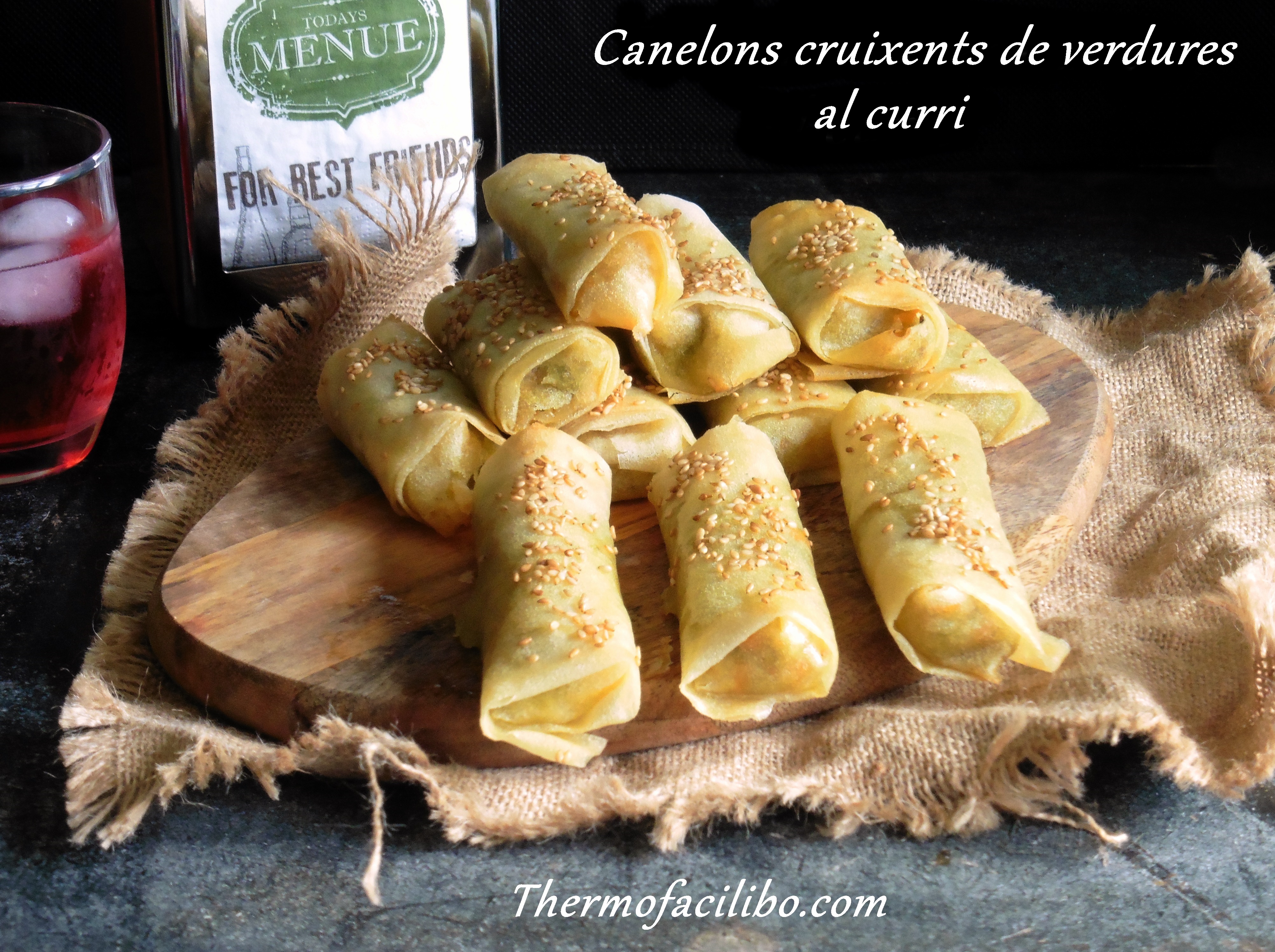 Són com uns canelons fets de pasta brick i farcits de verdures aromatitzades amb curri. Tenen una textura exterior cruixent i un interior sucós i molt gustós, gràcies al farcit de verdures. A casa, són un èxit assegurat, cada vegada que els preparo, desapareixen en un tres i no res.