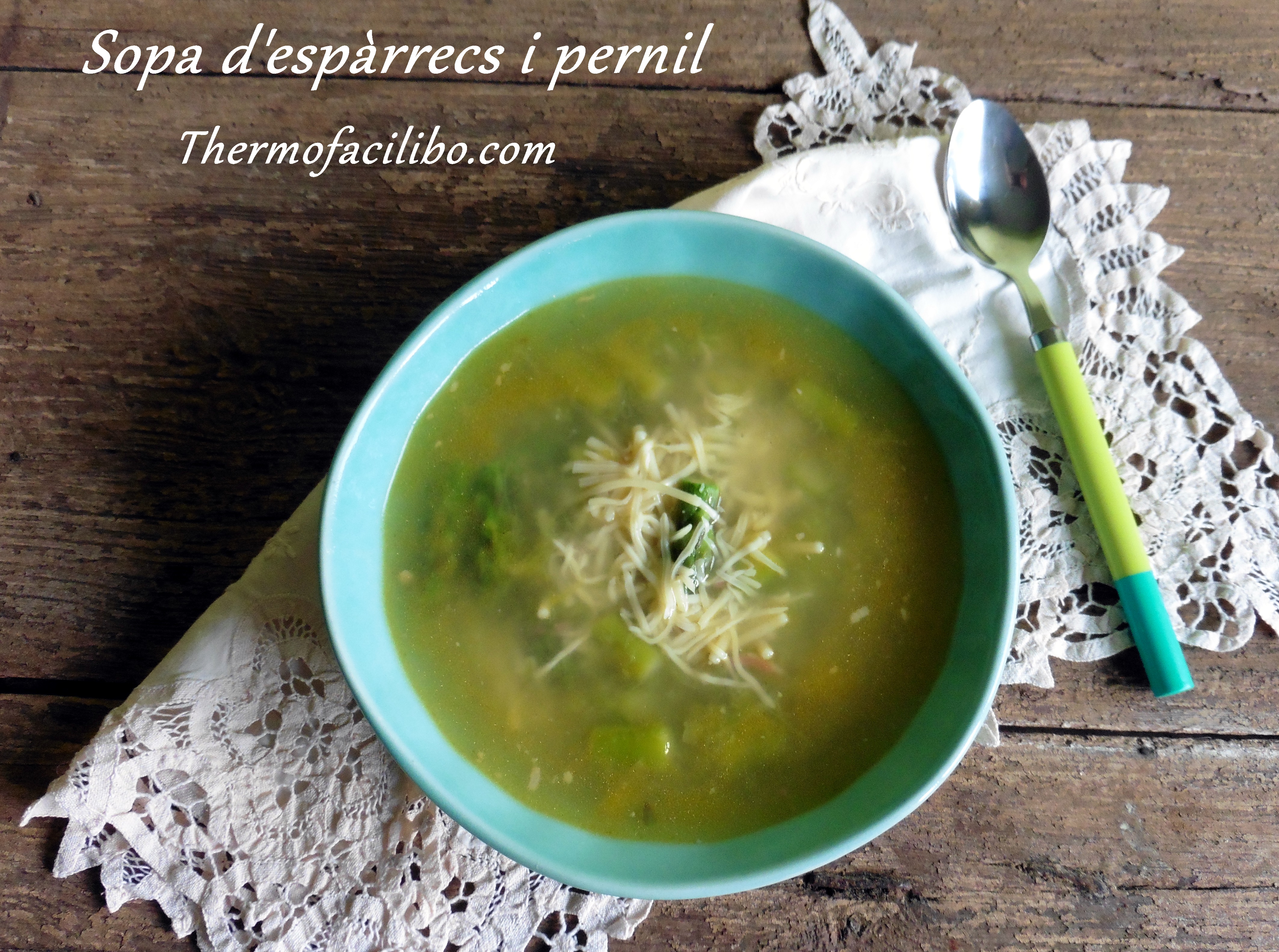Ja sabeu que m’agrada molt cuinar amb productes de temporada, per tant, aprofitant que estem en temporada d’espàrrecs, he preparat una sopa amb aquest vegetal. Espero que us agradi!!!