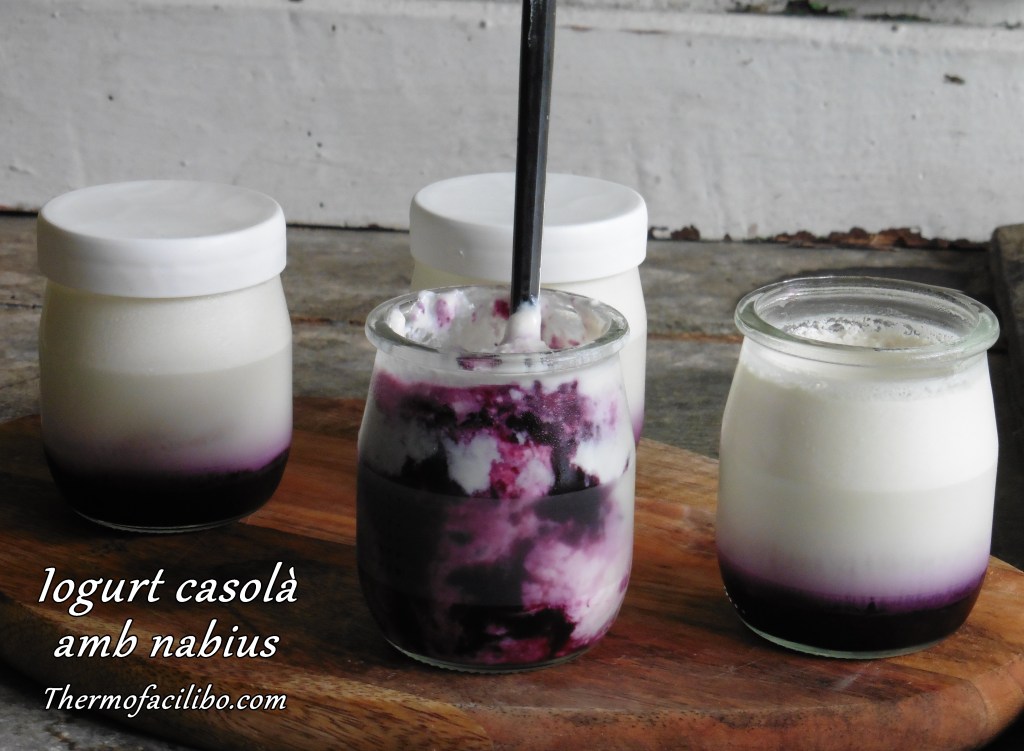 Avui els he fet amb nabius frescos, primer he fet un coulis amb ells i un cop ho he tingut tot a punt, he quallat els iogurts a la iogurtera. Tot i que es pot fer al forn, o si teniu el model de thermomix, TM6, es poden fermentar en el varoma.