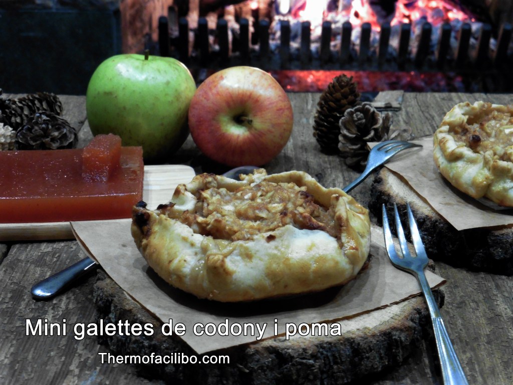 A l’hora de berenar vaig preparar aquestes mini galettes de codony i poma. La massa és molt ràpida de fer i el farcit queda boníssim amb la barreja de mascarpone, pomes i codony. I ara que en el jardí tinc un pomer a tope de pomes, què millor que fer receptes amb aquesta fruita.