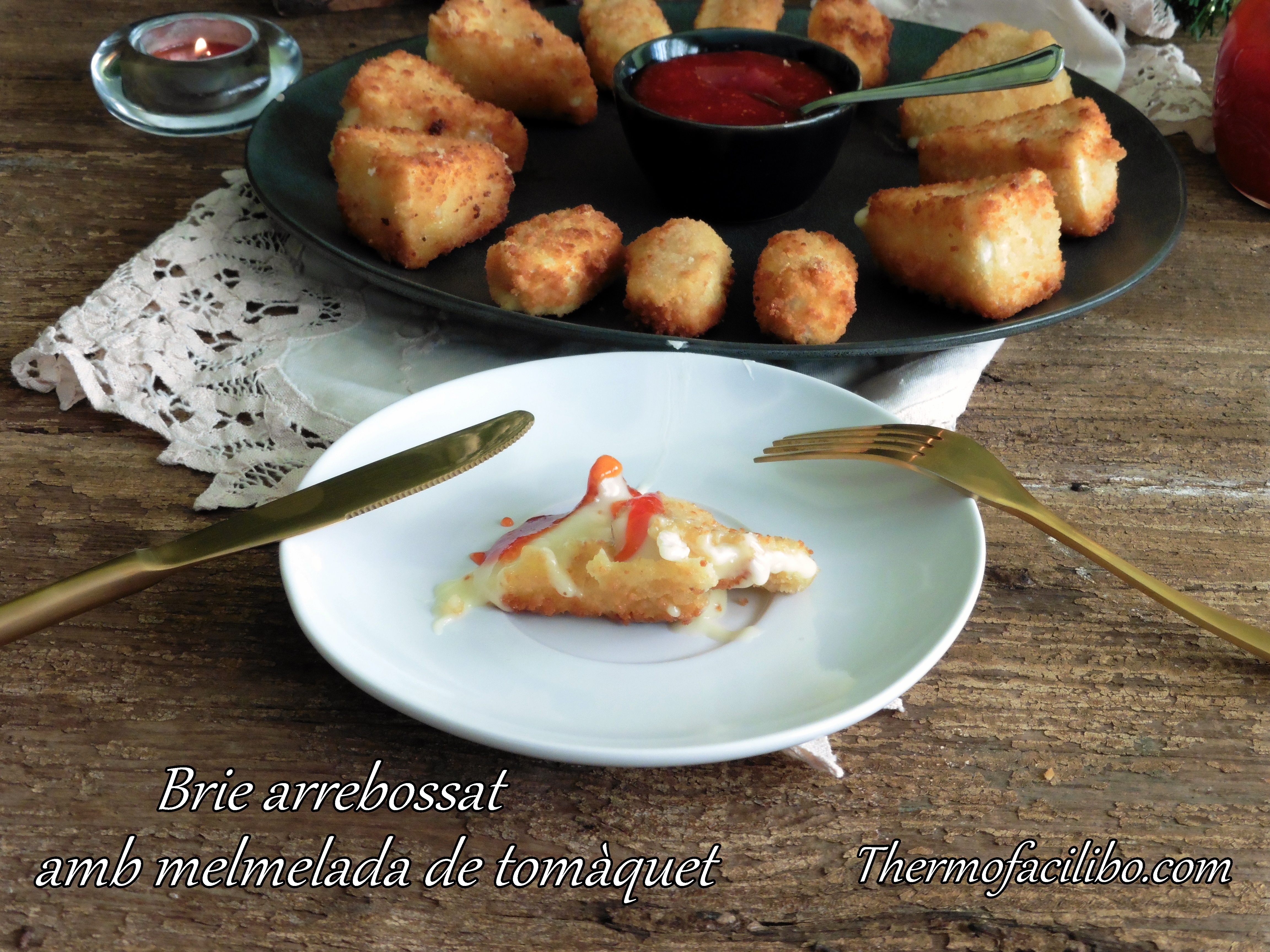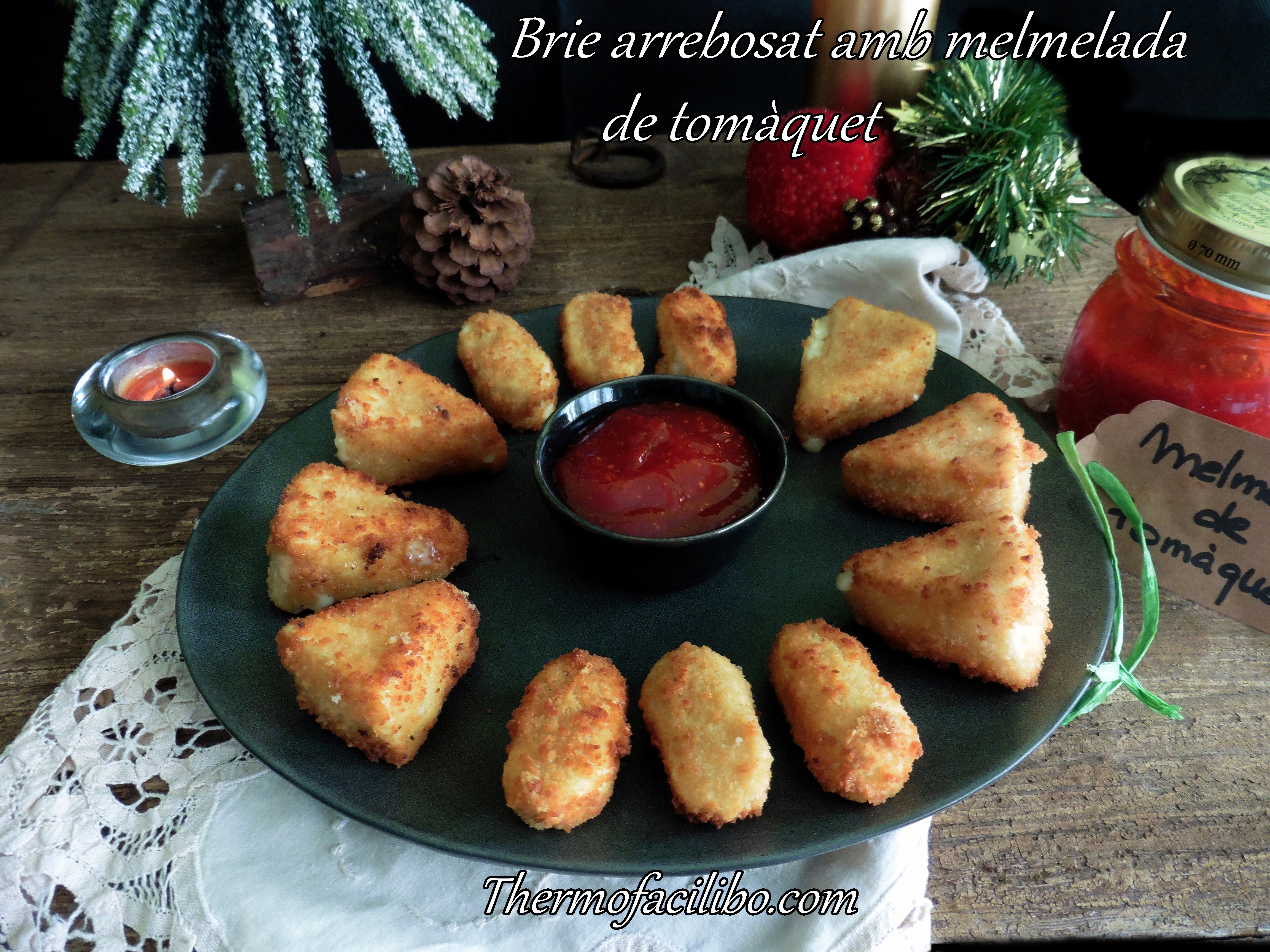 Un aperitiu que faig en moltes ocasions, són aquestes porcions de brie o camembert arrebossades i acompanyades amb melmelada de tomàquet casolana. És una recepta senzillíssima, però que a casa té molt bona acceptació.