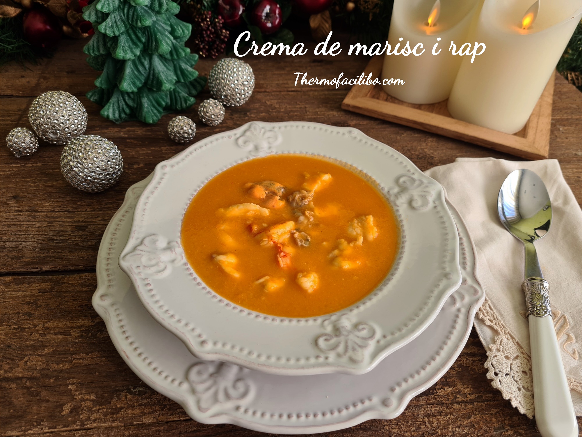 És una crema festiva i molt, molt saborosa. La recepta és de cookidoo, però jo l’he complementada amb més toppings. De cloïsses i musclos que he obert prèviament al vapor i també, de més trossos de rap. Tenia alguns trossos de rap congelats que em van sobrar del dinar del dia de Nadal, els he tret del congelador una estona abans perquè es descongelessin i al final de la recepta, els he afegit a la crema. El resultat ha sigut espectacular, una crema boníssima i amb un munt de toppings de peix i marisc que li han anat genial.
