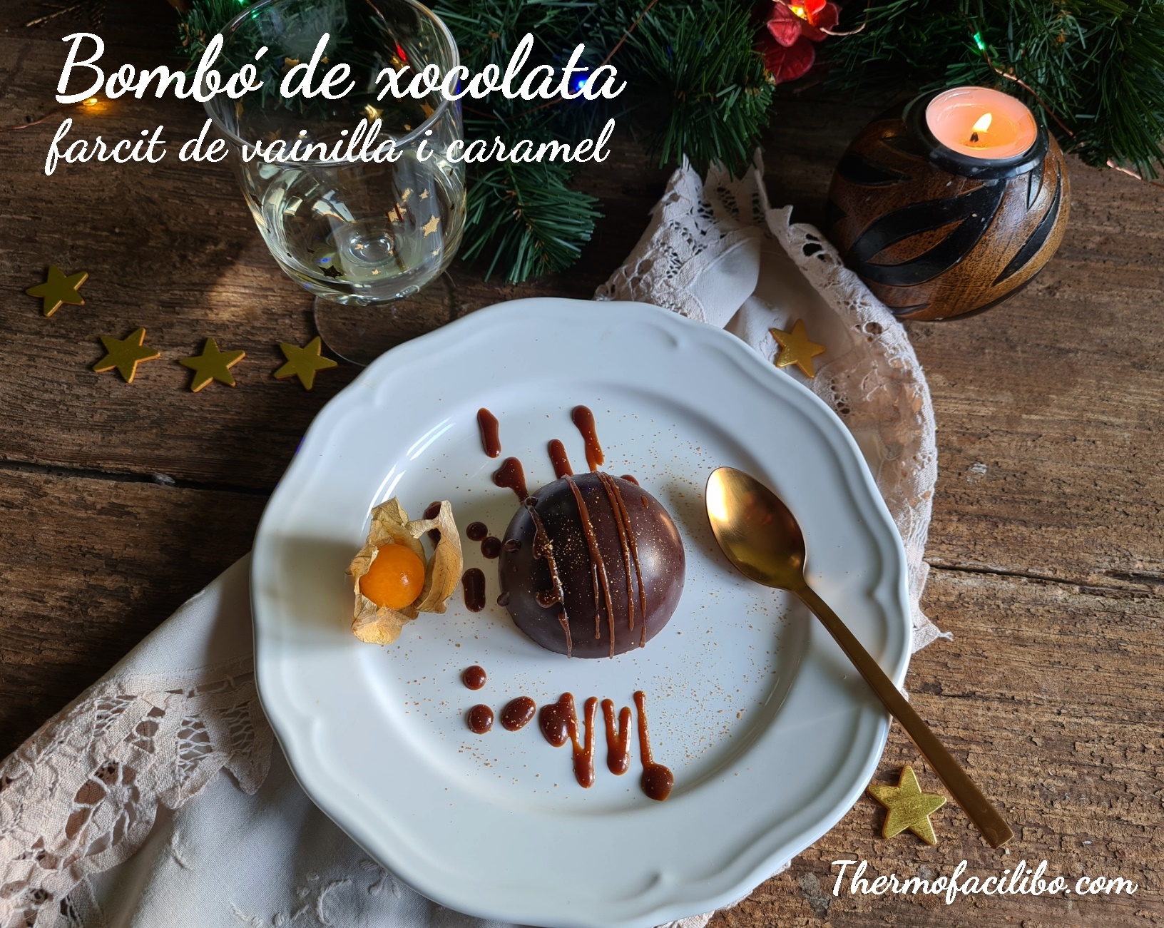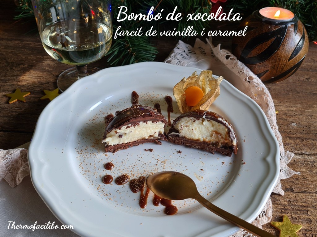 Cada any en aquestes festes m’agrada preparar postres més elaborades, com les que he fet avui, un bombó de xocolata farcit de crema de vainilla i caramel, boníssim i molt vistós!!!