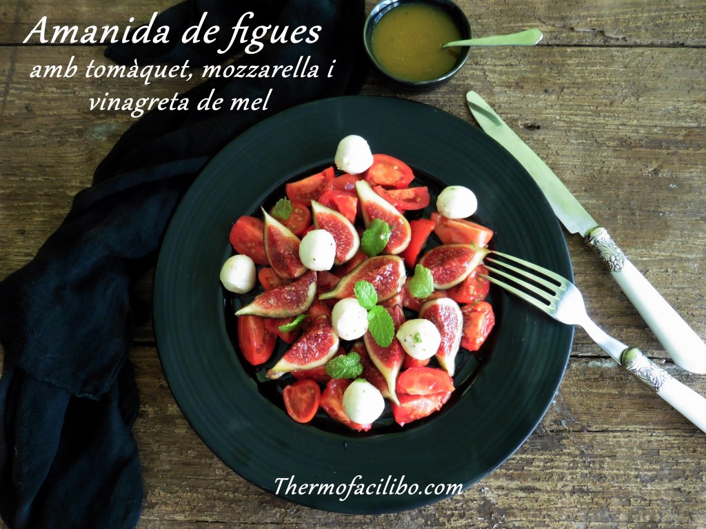 Amanida de figues amb tomàquet, mozzarella i vinagreta de mel
