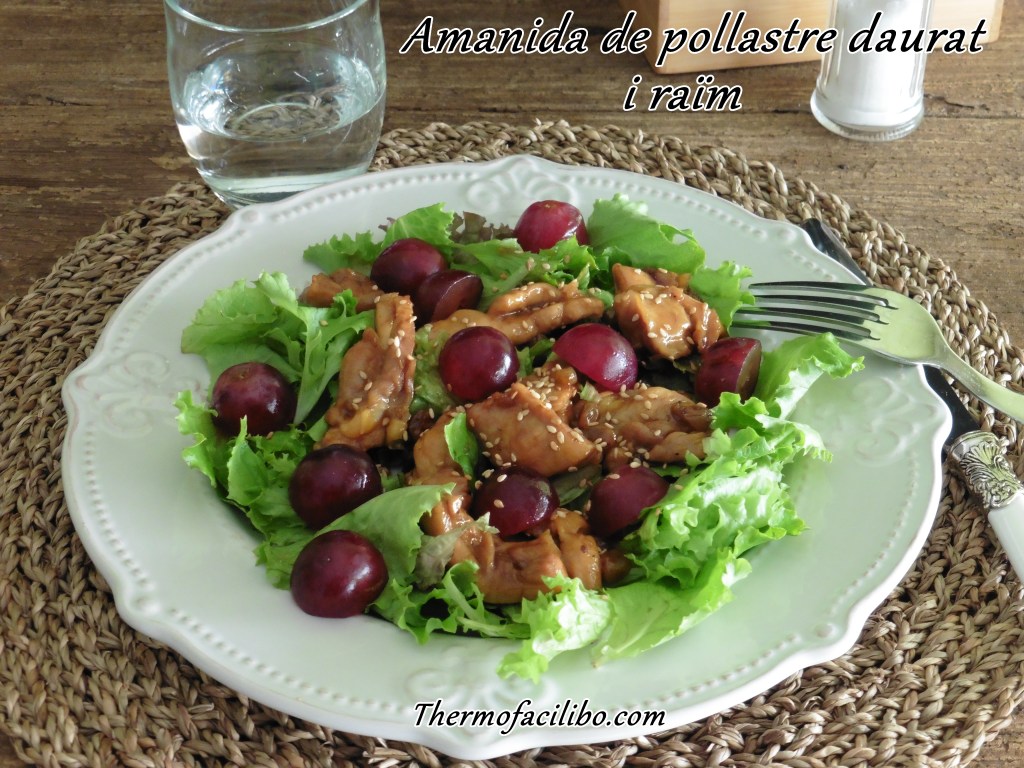 Aquests dies, a casa, les amanides són les reines dels menús. Us ensenyo la que he fet avui!!! És una amanida tèbia, boníssima, de pollastre, raïm i panses.