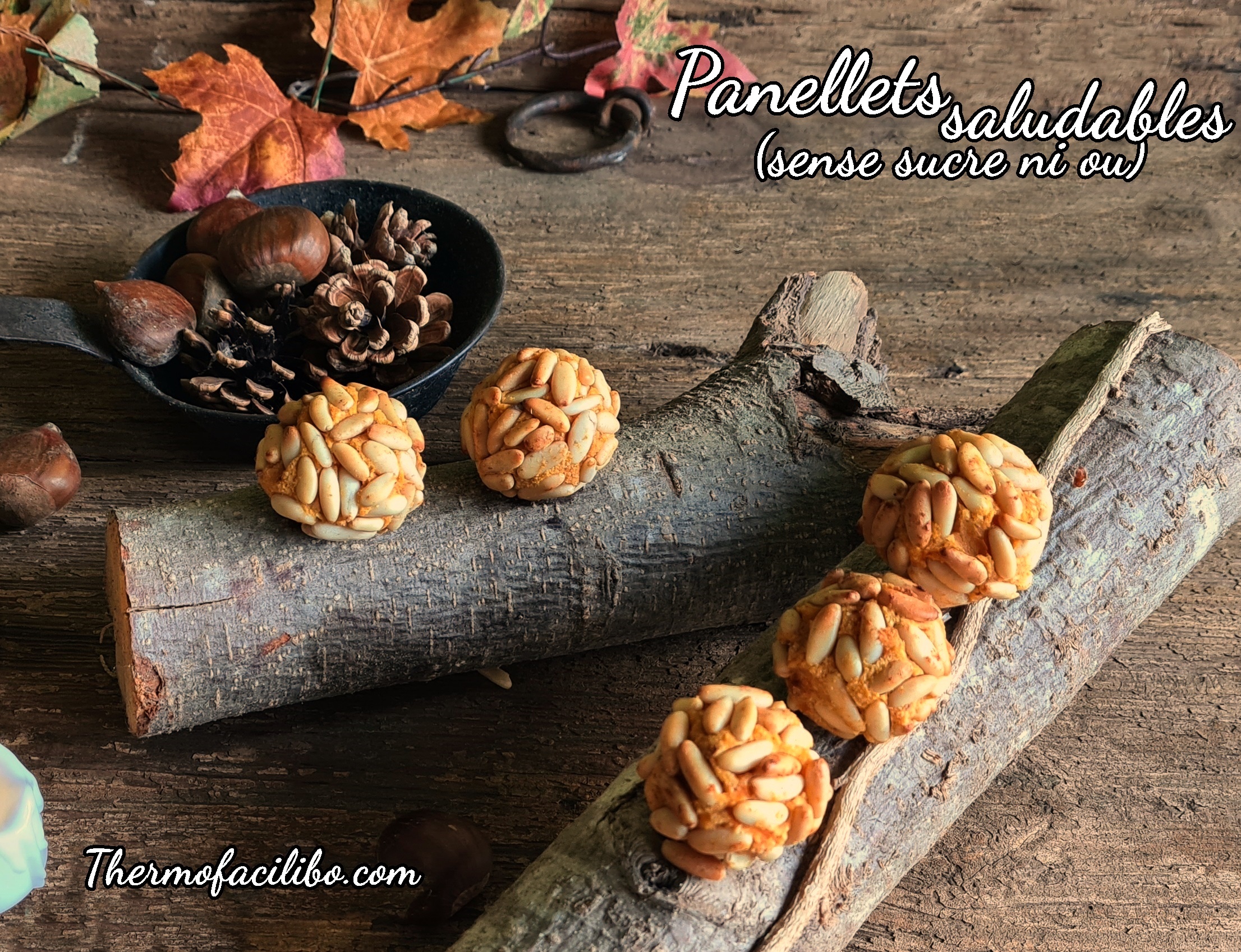 Per fer-los he utilitzat moniato (més dolç que la patata), farina d’ametlles i dàtils (que els he fet servir per endolcir una mica més la massa), de la varietat Medjool (més dolçets també) En aquesta massa s’hi pot afegir ratlladura de cítrics, canyella…. I a l’hora d’arrebossar; Pinyons, coco, granet d’ametlla, sèsam…. Imaginació al poder….. Fins els podem pintar amb polpa de caqui!!!