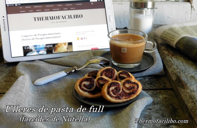 Vaaaa avui una recepta ràpida i molt senzilla, sense robot i només amb 3 ingredients. Ulleres de pasta de full amb crema de cacau. Boníssimes!!!! Us deixo el pas a pas de la preparació amb fotos. Què us semblen??? Són fàcils, oi?? Perfectes per encetar el cap de setmana amb un petit caprici dolç!!! Us animeu???